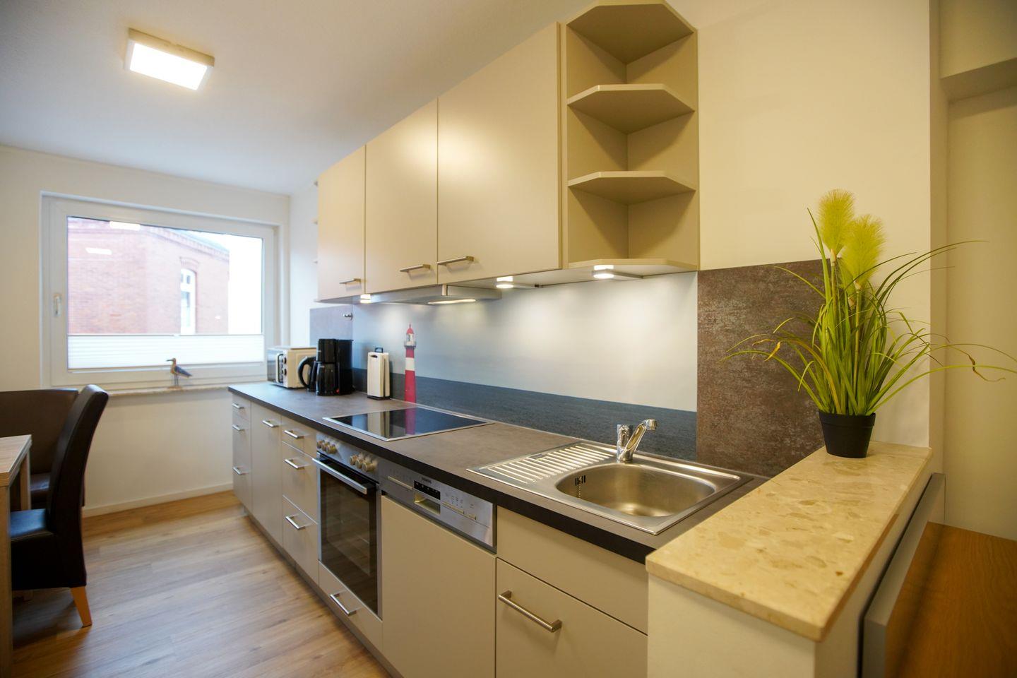 Sie verfügt über zwei großzügige Schlafzimmer, einen Wohnbereich mit integrierter Küche sowie ein Badezimmer. Der Balkon mit Terrassencharakter erweitert den Wohnraum nach draußen. Die Wohnung liegt zentral und zugleich ruhig im Ortskern von Borkum.