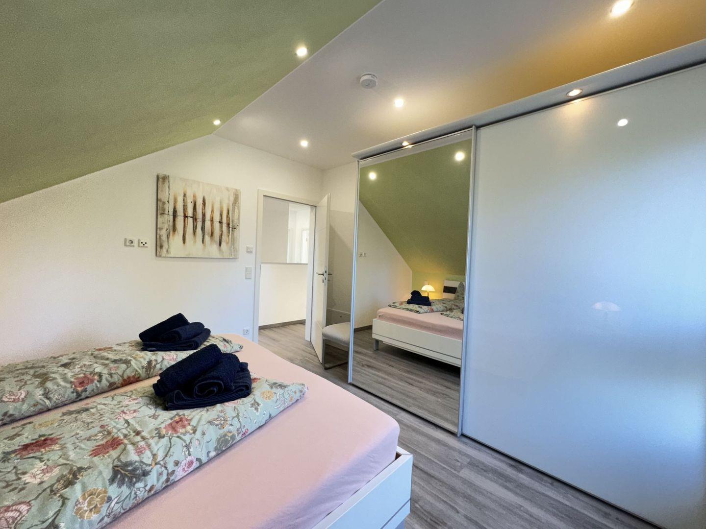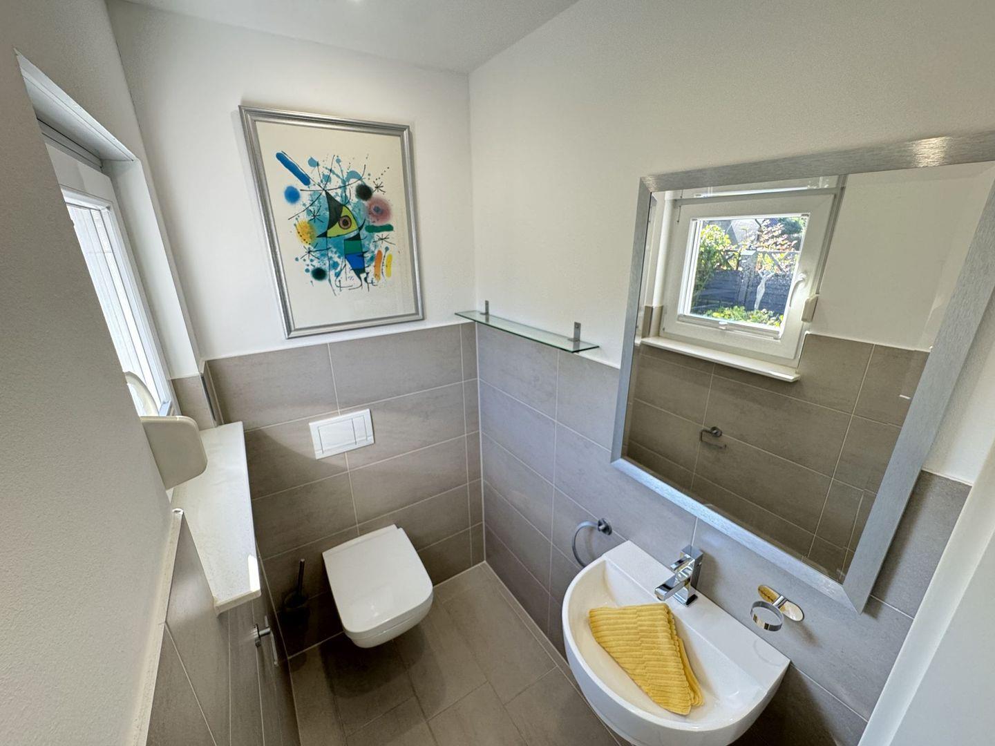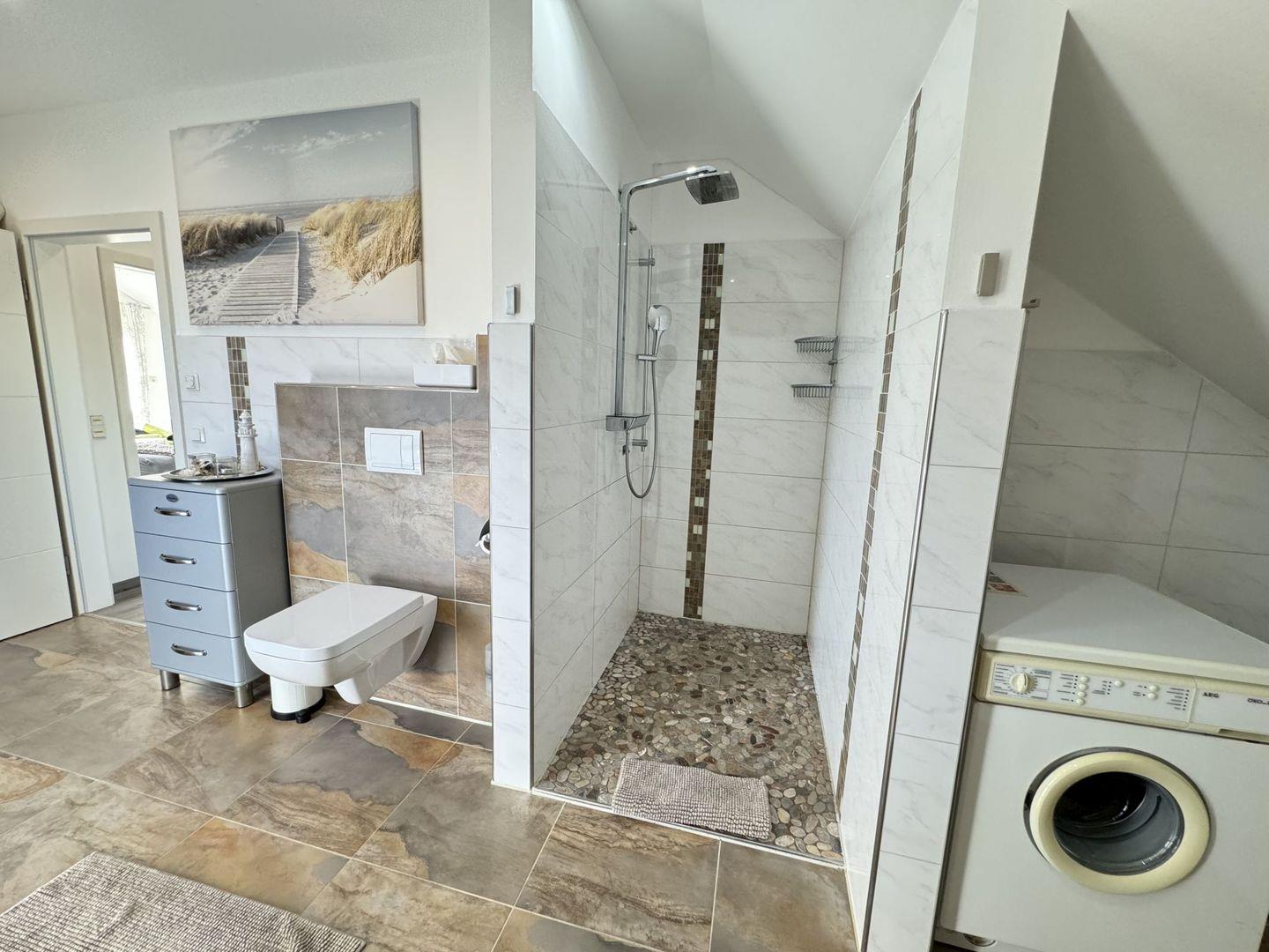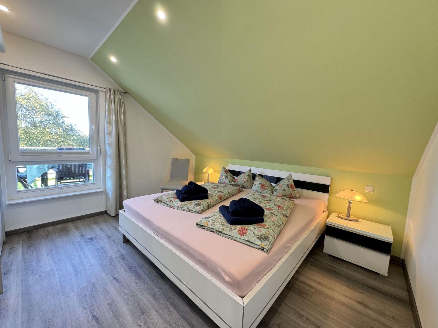 Das Ferienhaus verfügt über zwei Schlafzimmer, die beide im veganen Stil und mit Vinylboden gestaltet sind und so ein modernes und gesundes Ambiente schaffen. Ein Gäste-WC ergänzt das Badezimmer, das mit einer bodengleichen Dusche, einem Waschbecken und einem WC ausgestattet ist. Eine Fußbodenheizung sorgt hierbei für ein behagliches Raumklima, während in jedem Badezimmerfenster Sichtschutz vorhanden ist.
