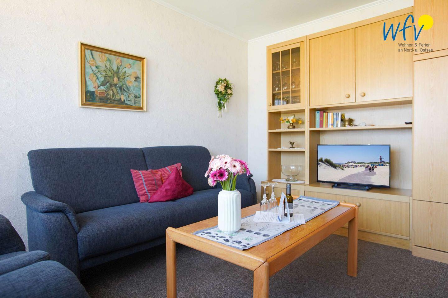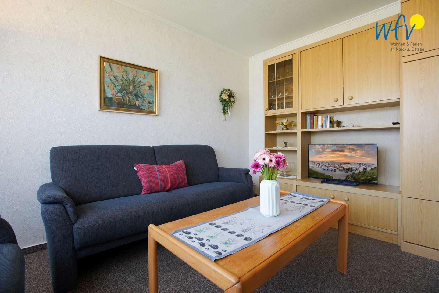 In dem gemütlichen Wohnraum mit Couch und TV (Kabel) können Sie herrlich ausspannen, fernsehen und lesen. Zum Surfen vom Smartphone aus empfangen Sie kostenlos freies WLAN. Auch für Gesellschafts- und Kinderspiele ist hier ausreichend Platz.