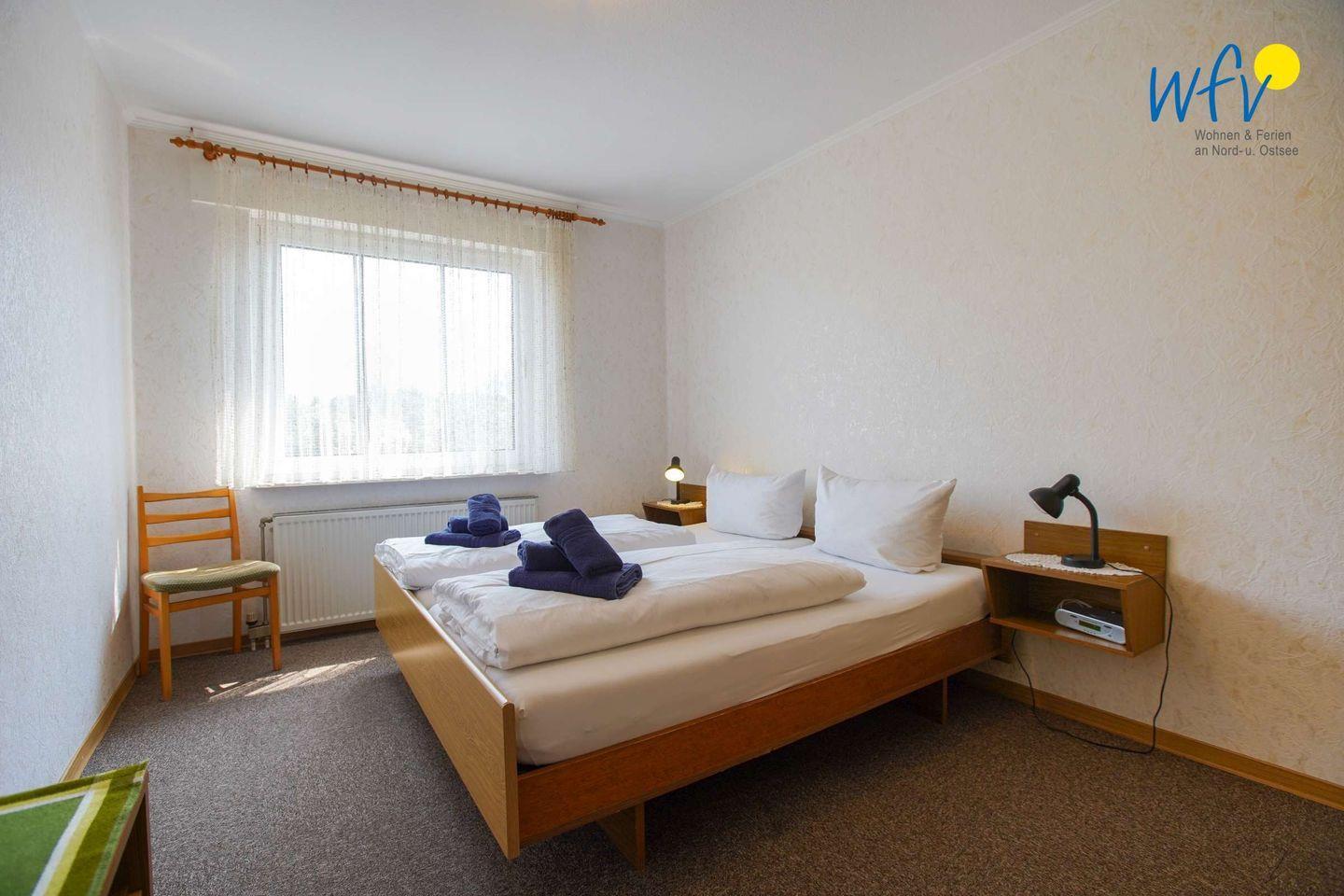 Wenn auf Borkum die Sonne untergeht, bietet Ihnen das separate Schlafzimmer mit Doppelbett (2 x 90 x 190 cm) angenehme Rückzugsmöglichkeiten. Zwei weitere bequeme Schlafplätze bestehen durch das Schrankbett im Wohnraum (2 x 90 x 190 cm).