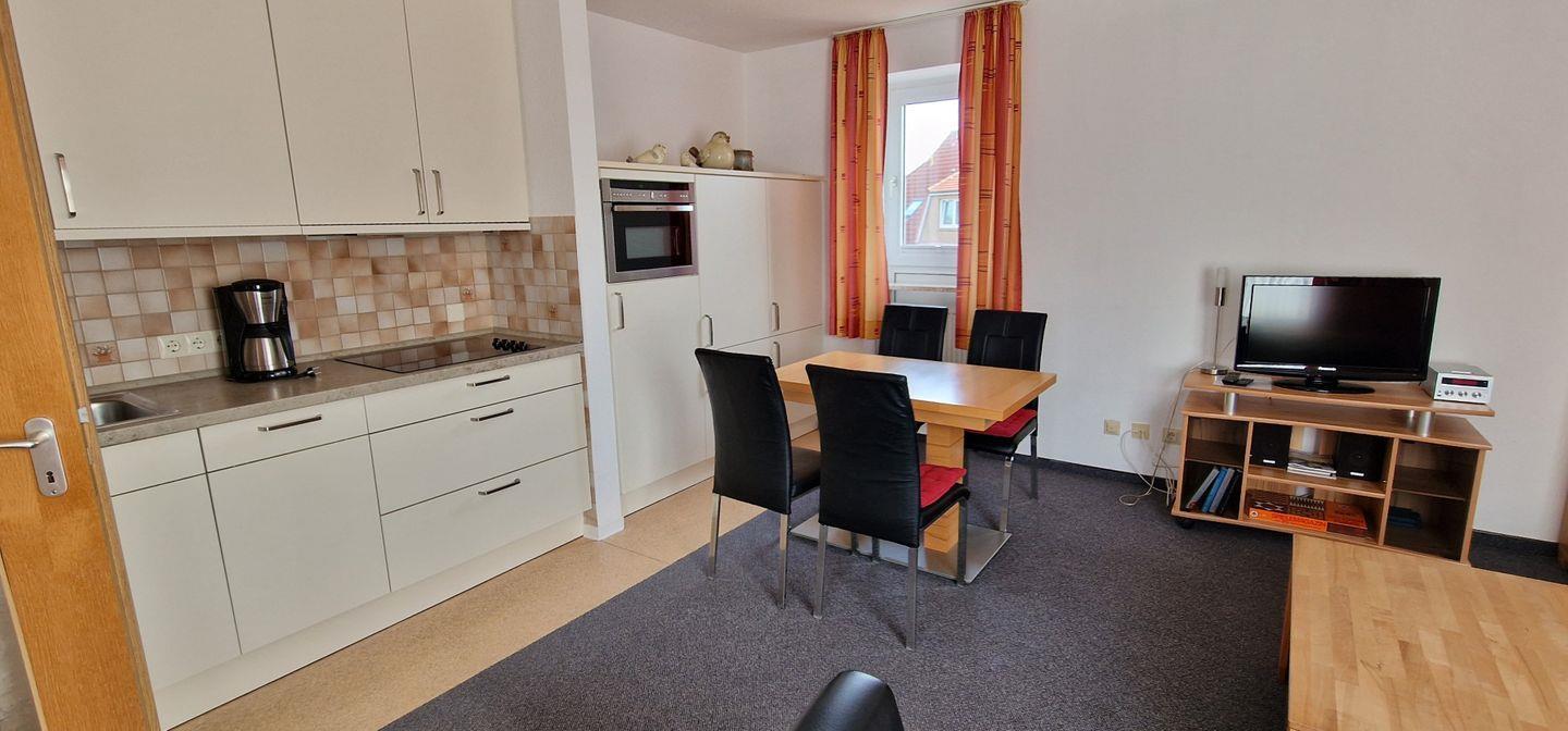 Moderne 2-Zimmer Ferienwohnung in Borkum, nur 300m vom Strand, mit Südbalkon und voll ausgestatteter Küche.