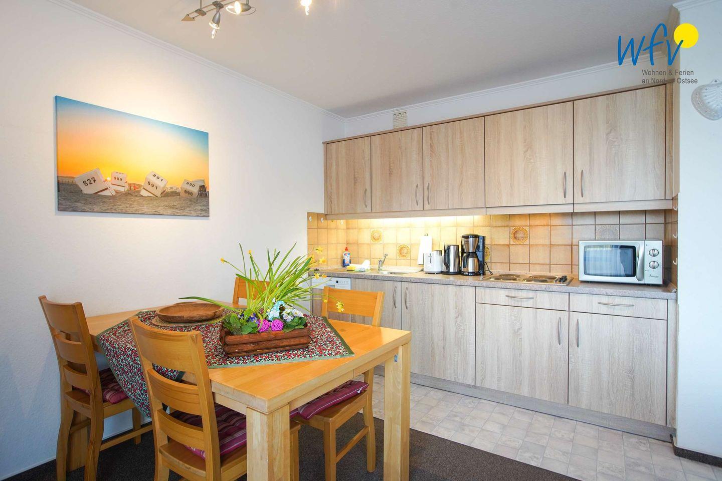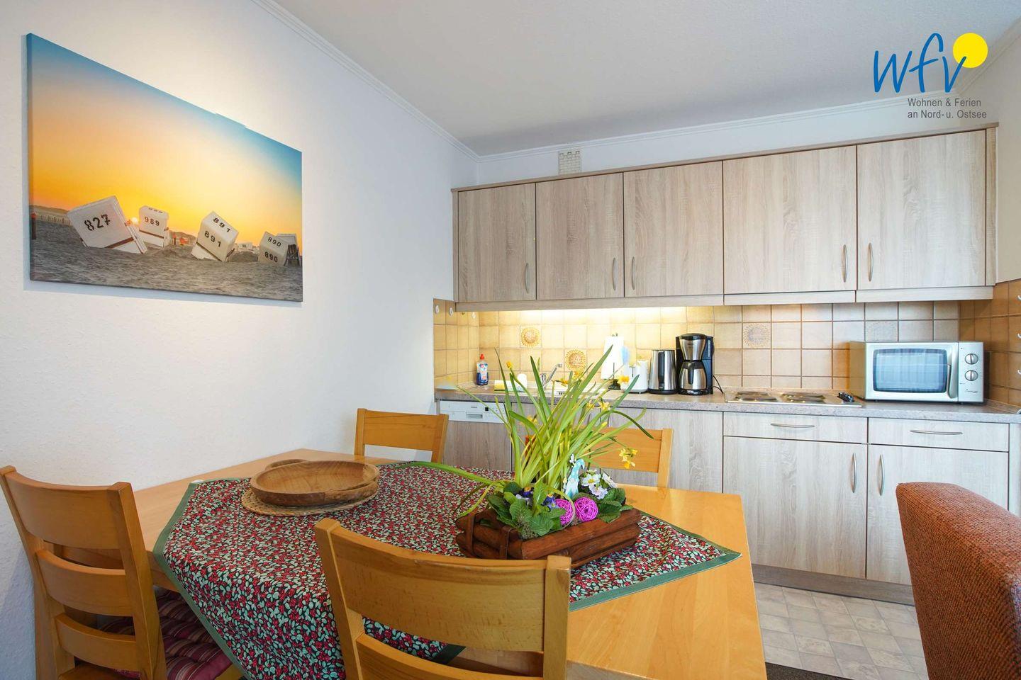 Ihr Ferienfrühstück, Snacks für den Strand oder leckere Mahlzeiten können Sie bequem und schnell in der integrierten Küchenzeile zubereiten. Unter anderem sind ein 4-Plattenherd, eine Mikrowelle und eine Spülmaschine vorhanden sowie eine Kaffeemaschine, ein Toaster und ein Wasserkocher.