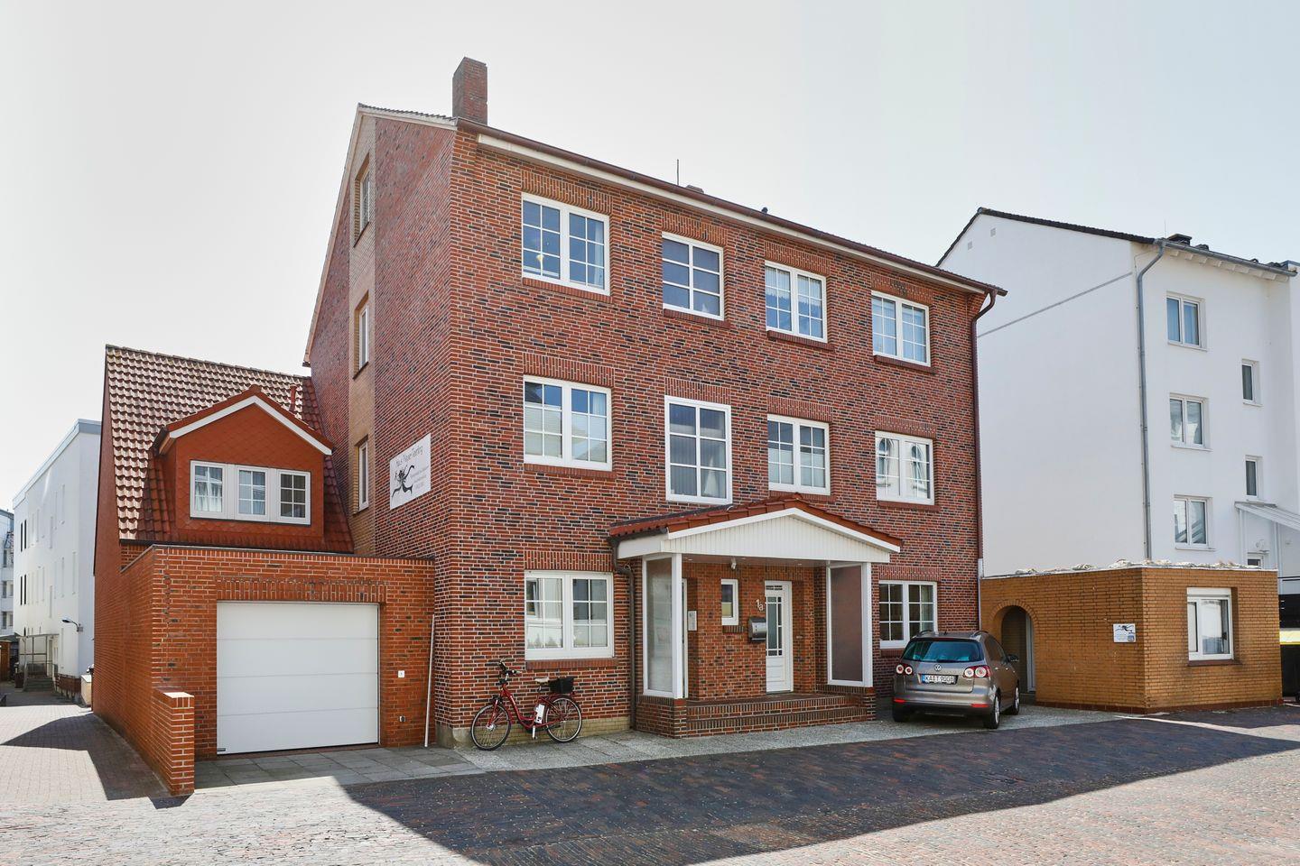 Urlaub am Meer. Das ist bei diesem Haus kein Werbespruch, sondern ein Versprechen: Nur wenige Schritte vom Strand entfernt können Sie schon fast das Meeresrauschen hören und das Salz der See auf den Lippen schmecken. Das Haus Meyer-Teerling liegt in unmittelbarer Nähe zum Hauptbade- und Surfstrand der Insel Borkum. Dazwischen liegt die maritime Strandpromenade, die mit Ihren unzähligen Cafés und Milchbuden zum Verweilen und Abschalten einlädt. Ebenso nah liegt der Neue Leuchtturm und das Inselzentrum. Von hier gelangen Sie mit nur wenigen Schritten zu GEschäften, Gastronomie, dem Meerwassererlebnisbad „Gezeitenland“, dem Bahnhof usw. Das Haus befindet sich in der roten Fahrverbotszone. Fahrzeuge dürfen die Zone nur für die An- und Abreise befahren und benötigen hierfür einen roten Schein, der bei der Fährgesellschaft AG Ems erhältlich ist.
