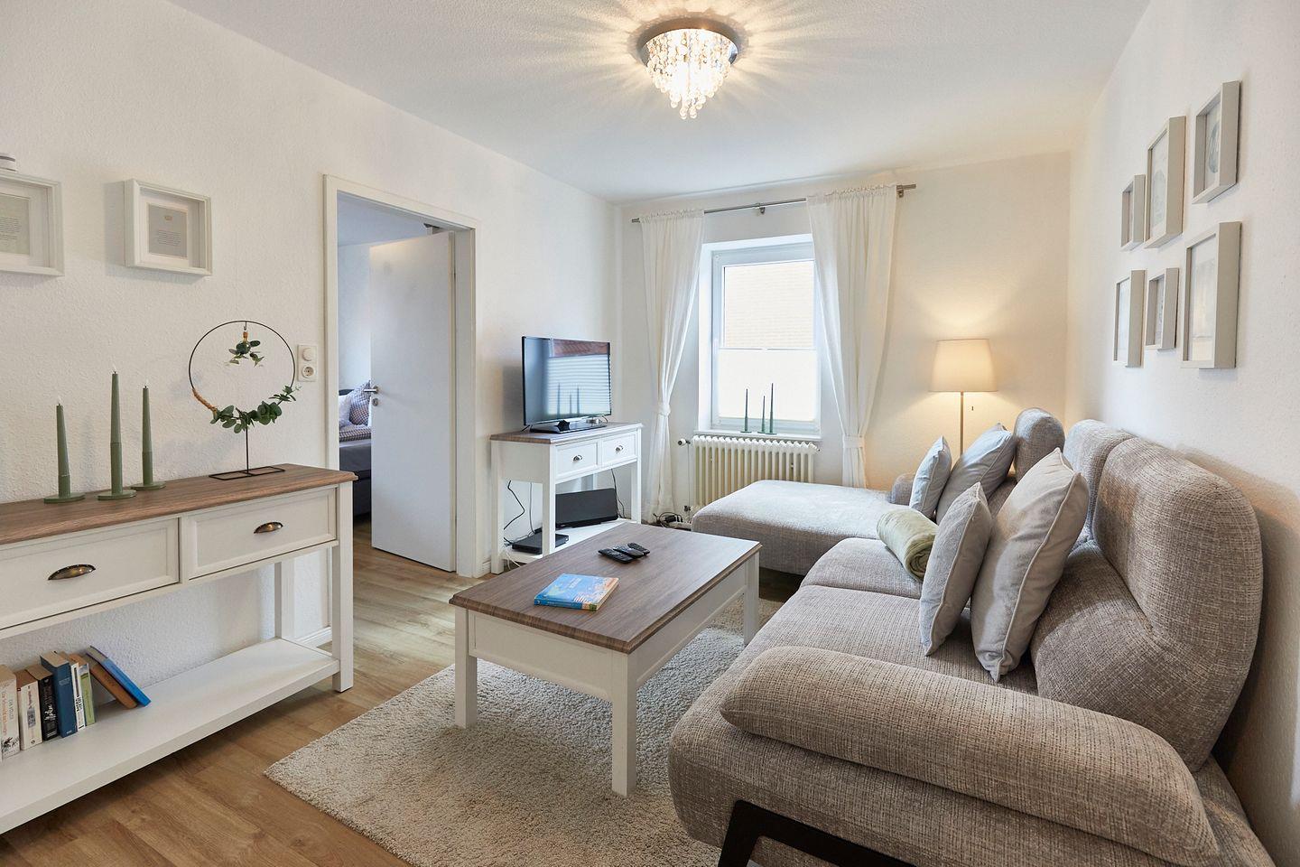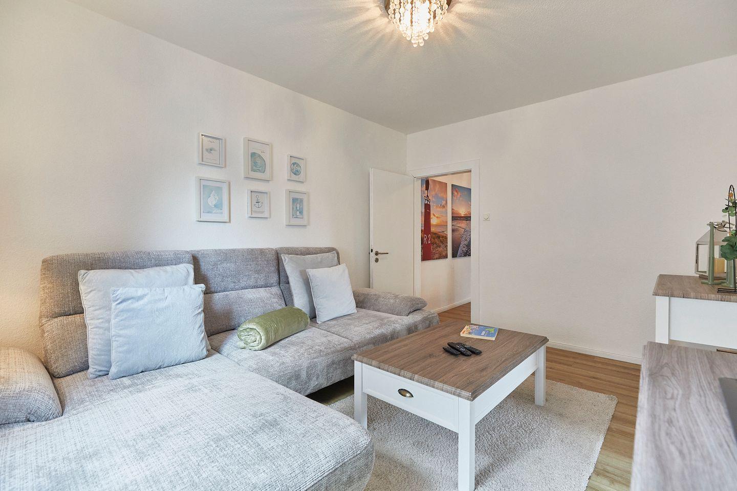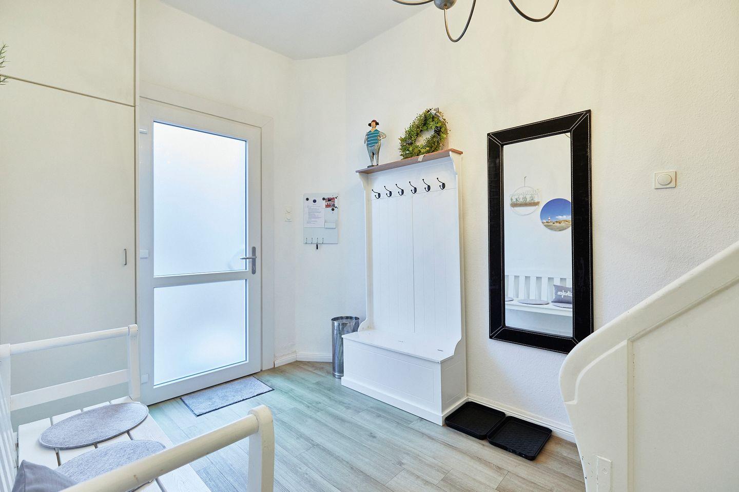 Die Wohnung befindet sich über 2 Etagen und überzeugt mit einem lichtdurchfluteten Wohnraum, der mit modernen Annehmlichkeiten ausgestattet ist. Das gemütliche Wohnzimmer lädt zum Verweilen ein, ausgestattet mit bequemen Sofas, einem Essbereich und zwei Fernsehern , auch mit Neflix - App (1 x davon im Küchenbereich) für entspannte Filmabende.Oder sitzen Sie gemütlich auf der Terrasse, wo Sie die frische Nordseeluft genießen und im Freien speisen können.