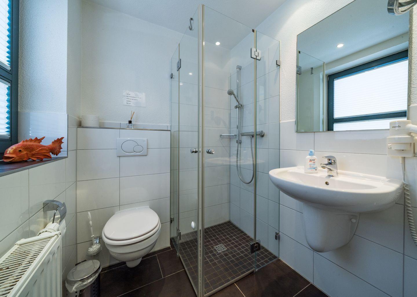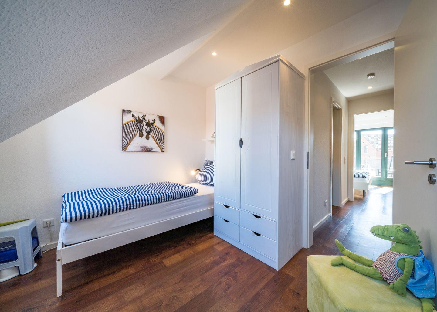 Die Ferienwohnung verfügt über drei freundliche Schlafzimmer, die mit hochwertigen Möbeln und allergikerfreundlichen Materialien ausgestattet sind. Ideal, um nach einem Tag an der frischen Luft zu entspannen und neue Energie zu tanken. Die zwei modernen Badezimmer, eines mit bodengleicher Dusche, sorgen dafür, dass auch bei größeren Gruppen niemand auf Komfort verzichten muss.
