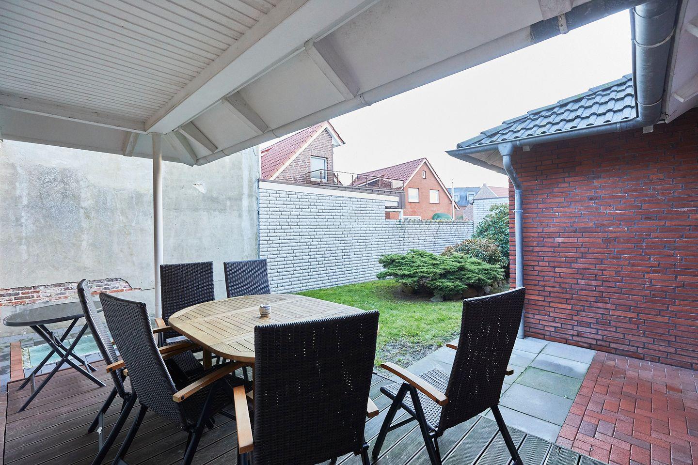 Ein besonderes Highlight der Wohnung ist die überdachte Terrasse, auf der Sie die frische Luft der Nordsee genießen und sich entspannen können. Zudem gibt es einen schönen Spielbereich für Kinder, der ihnen genug Raum zum Spielen und Toben bietet. Die Wohnung ist allergikergeeignet und bietet durch die Nutzung von Gemeinschaftswaschmaschinen und Trocknern zusätzlichen Komfort.