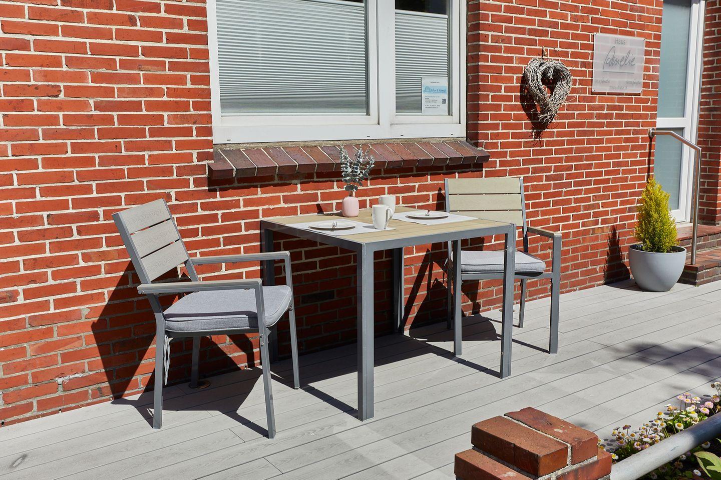 Ein weiteres Highlight ist die eigene kleine Terrasse, die zum Entspannen einlädt. Hier können Sie die frische Meeresbrise genießen und den Tag mit einem Glas Wein ausklingen lassen. Der Sichtschutz garantiert Ihnen zudem Privatsphäre, sodass Sie ungestörte Stunden im Freien verbringen können.
