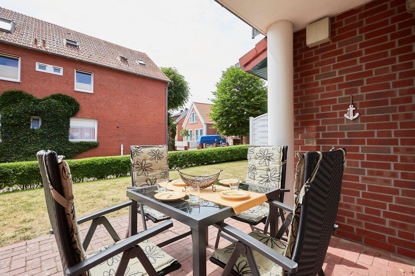 Gemütliche Ferienwohnung "Muschel" auf Borkum mit Terrasse, modernem Komfort und zentraler Lage nahe Strand und Einkaufsmöglichkeiten.