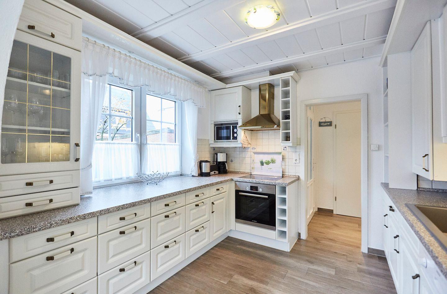 Der Mittelpunkt der Unterkunft ist das großzügige Wohnzimmer mit einem gemütlichen Kaminofen, der besonders an kühlen Abenden für eine behagliche Atmosphäre sorgt. Hier können Sie gemeinsam Zeit verbringen, Spiele spielen oder einfach entspannen. Genießen Sie Ihre Abendunterhaltung auf dem digitalen TV oder blättern Sie in den bereitgestellten Büchern. In der offenen Küche, die mit hochwertigen Geräten wie einem Ceranherd, Backofen, Mikrowelle und Geschirrspüler ausgestattet ist, können Sie Ihren kulinarischen Fähigkeiten freien Lauf lassen. Ein Esstisch im Essbereich lädt zu gemeinsamen Mahlzeiten ein.
