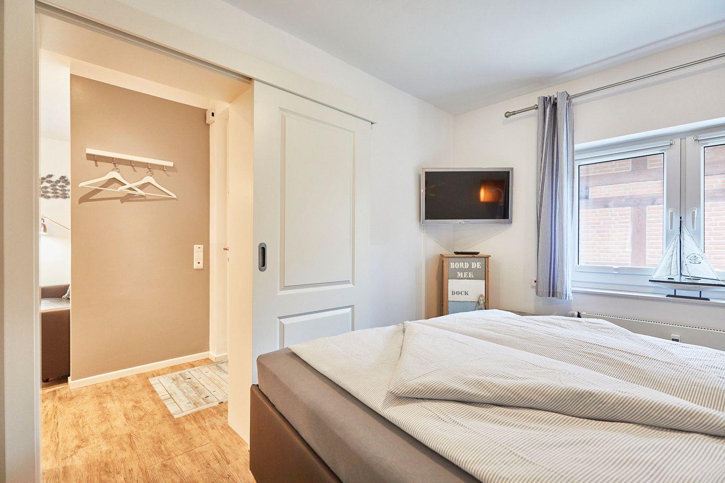 Das Schlafzimmer ist mit einem komfortablen Laminatboden ausgestattet und bietet Ihnen einen ruhigen Rückzugsort für erholsame Nächte. Hier können Sie Ihr wohlverdientes Süßholz genießen und den Klang der Wellen vor der Küste hören. Allergikerfreundliche Materialien tragen dazu bei, dass sich niemand unwohl fühlen muss.