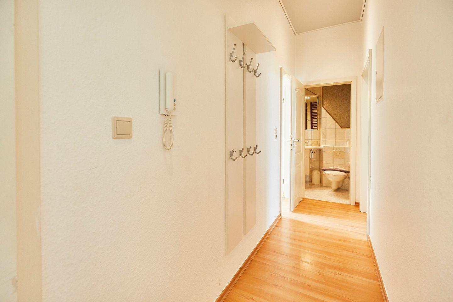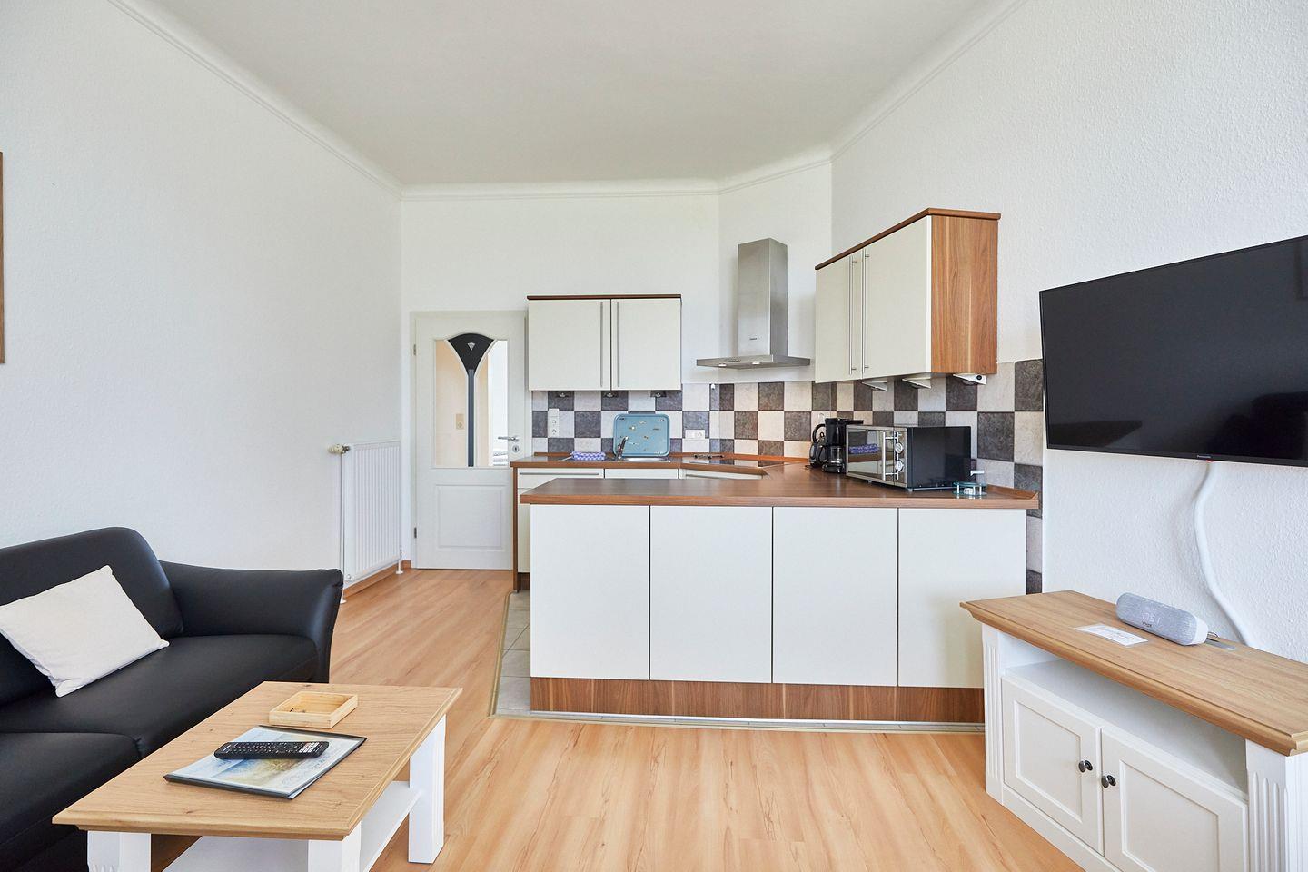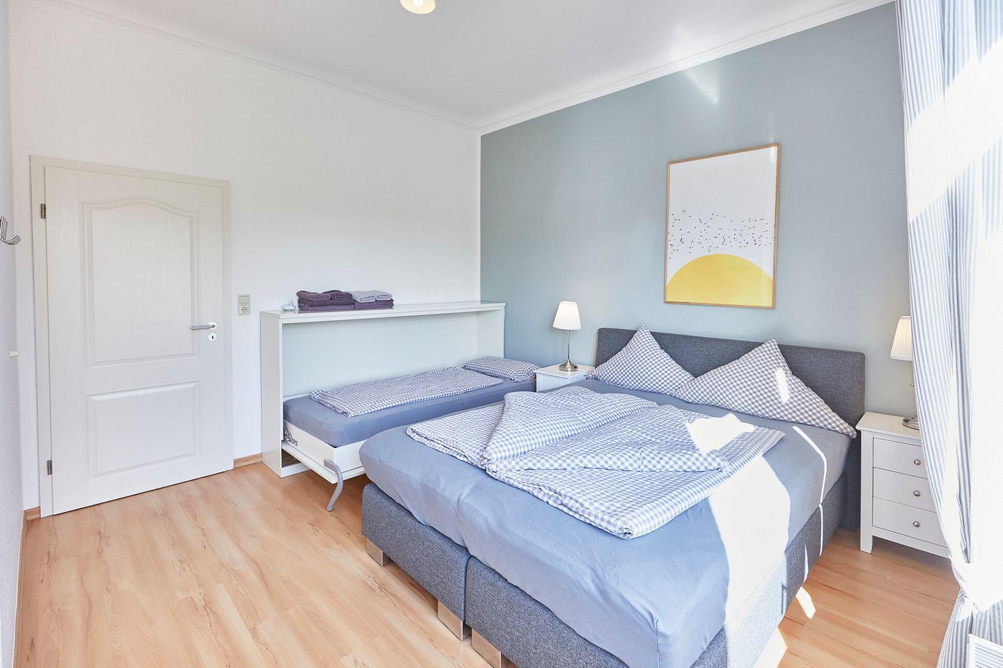 Die Ferienwohnung verfügt über zwei gemütliche Schlafzimmer, die durch ihren modernen Laminatboden und liebevolle Dekoration bestechen. Das geräumige Wohnzimmer lädt mit einer Sofaecke und einem Essbereich zu geselligen Abenden ein. Hier können Sie nach einem erlebnisreichen Tag die Füße hochlegen, einen Film auf dem digitalen TV genießen oder ein gutes Buch aus der hauseigenen Bibliothek lesen. Das lichtdurchflutete Ambiente sorgt für ein Wohlfühlklima, in dem Sie sofort entspannen können.