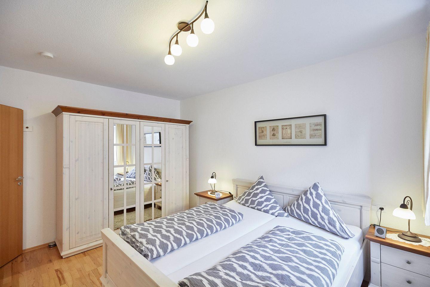 Die Ferienwohnung verfügt über zwei geschmackvoll eingerichtete Schlafzimmer, die durch ihren Laminatboden eine warme und einladende Atmosphäre ausstrahlen. Sorgfältig ausgewählte Möbelstücke bieten ausreichend Stauraum. Das Badezimmer ist mit einer modernen Dusche ausgestattet und bietet alles für eine entspannende Tagesroutine. Ein zusätzliches Highlight ist der große, helle Wohnbereich, der mit einem Fliesenboden ausgestattet ist. Hier können Sie auf der bequemen Sofaecke entspannen, gemeinsam spielen oder einen Film auf einem der zwei digitalen Fernseher genießen.