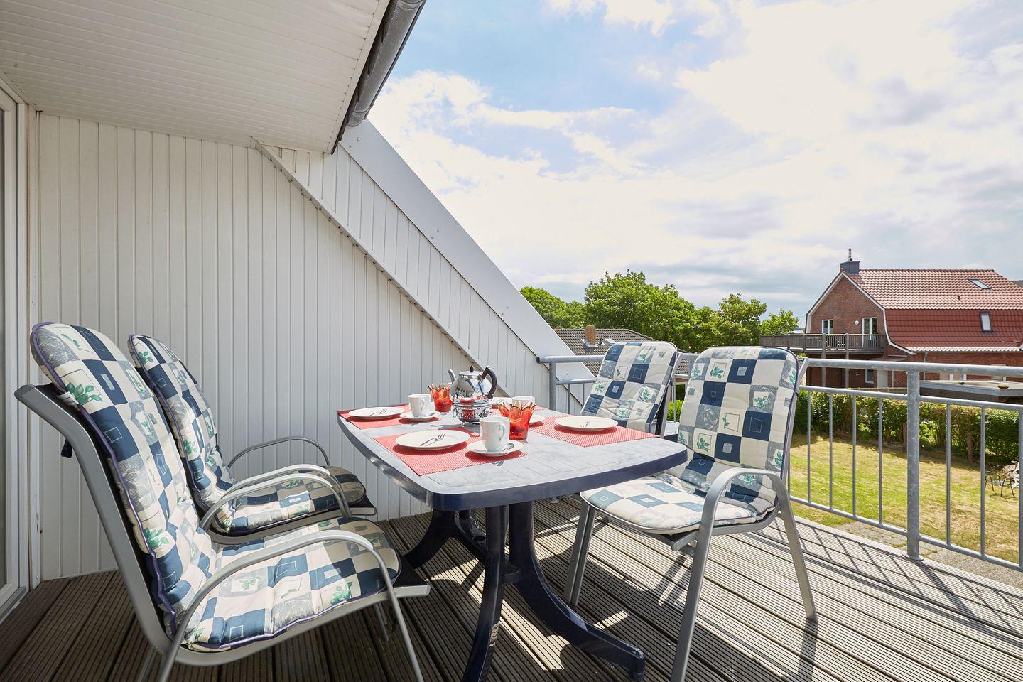 Der Balkon lädt dazu ein, die frische Brise und den Blick auf die Umgebung zu genießen. Bei gutem Wetter können Sie hier entspannen und die Seele baumeln lassen.