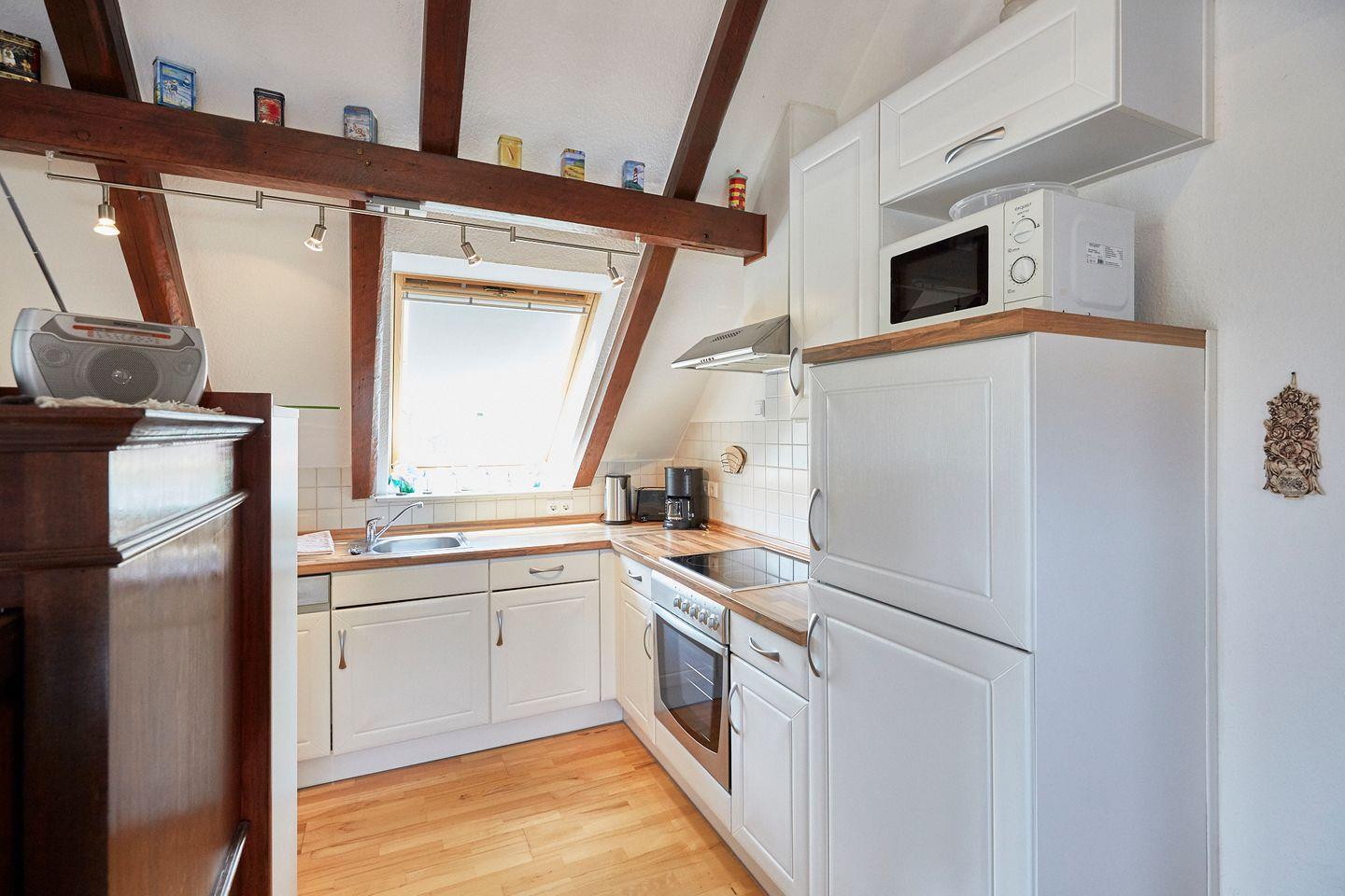 Die gut ausgestattete Küche lässt keine Wünsche offen. Ob Sie gerne kochen oder einfach nur einen Kaffee am Morgen zubereiten möchten, an Ausstattung mangelt es nicht: Backofen, Mikrowelle, Kühlschrank mit Gefrierfach, Geschirrspüler, Toaster und Wasserkocher stehen Ihnen zur Verfügung. Darüber hinaus ist die Wohnung allergikergeeignet, was einen komfortablen Aufenthalt garantiert.