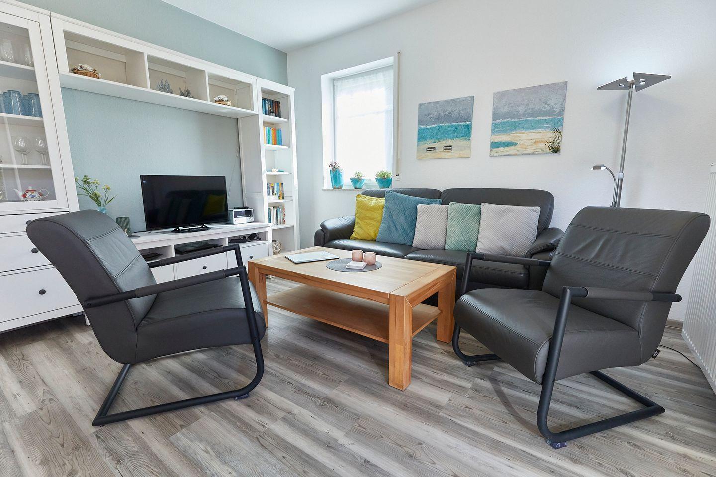 Moderne Ferienwohnung Westwind auf Borkum mit Terrasse, WLAN und Strandnähe für einen erholsamen Urlaub.
