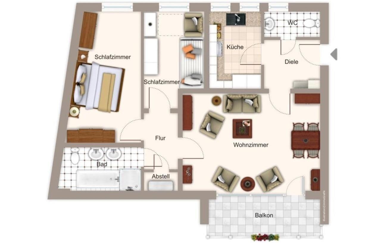 Komfortable Ferienwohnung mit Balkon und Weitblick in zentraler Lage auf Borkum.