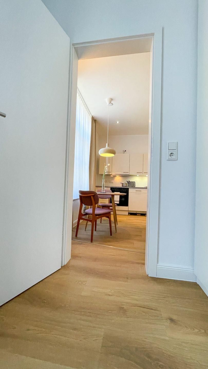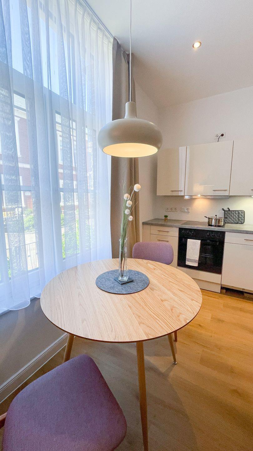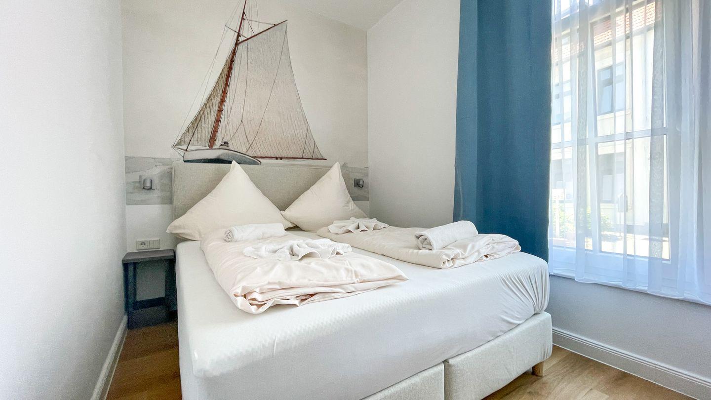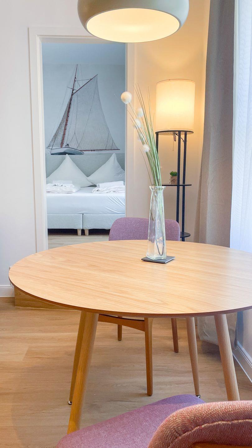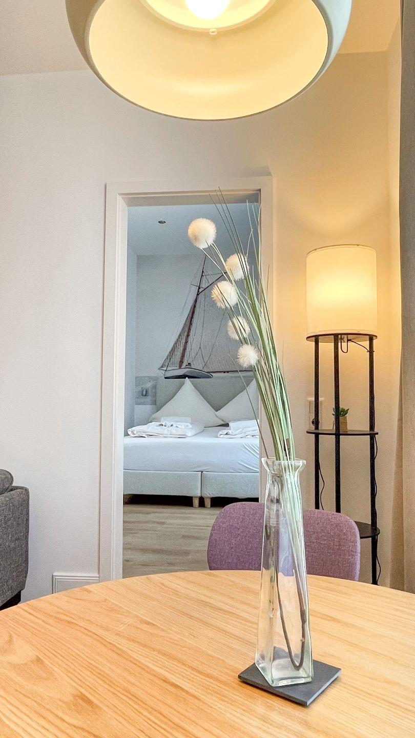 Wohnung 12 ist eine in diesem Winter frisch renovierte Ferienwohnung im Erdgeschoss des Haus Derk Juist auf Borkum. Die Wohnung verbindet Altbaucharakter mit einer klaren, modernen Ausstattung.