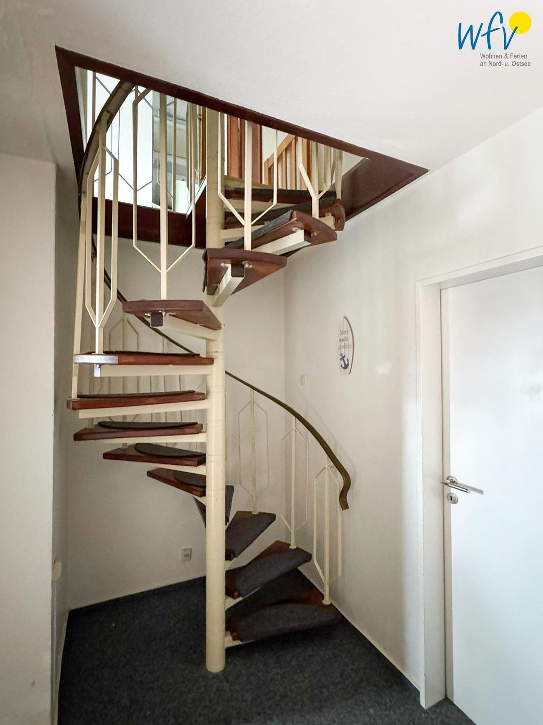Die Ferienwohnung erstreckt sich über zwei Etagen (1. OG + DG) und verfügt über helle Räume und eine freundliche Atmosphäre. Die Böden sind mit schönem Vinyl ausgelegt, der sowohl Komfort als auch einfache Pflege garantiert. Das helle und geräumige Wohnzimmer im OG lädt dazu ein, den Abend mit einem Film oder einem gemeinsamen Spiel zu verbringen. Hier erwartet Sie eine gemütliche Sofaecke und ein Relaxsessel sowie ein modernes TV und ein CD-Spieler. Zum Surfen vom Smartphone aus empfangen Sie freies WLAN.