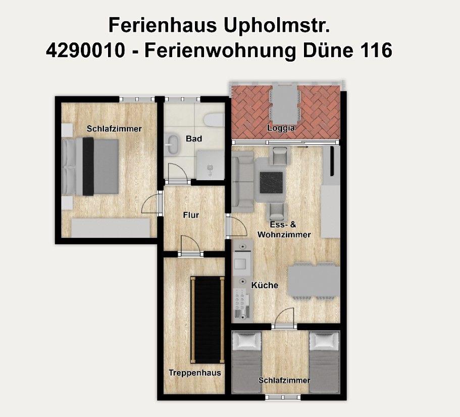 Auch für Allergiker ist unsere Ferienwohnung "Düne 116" attraktiv. Die Böden sind mit pflegeleichtem Laminat ausgelegt.