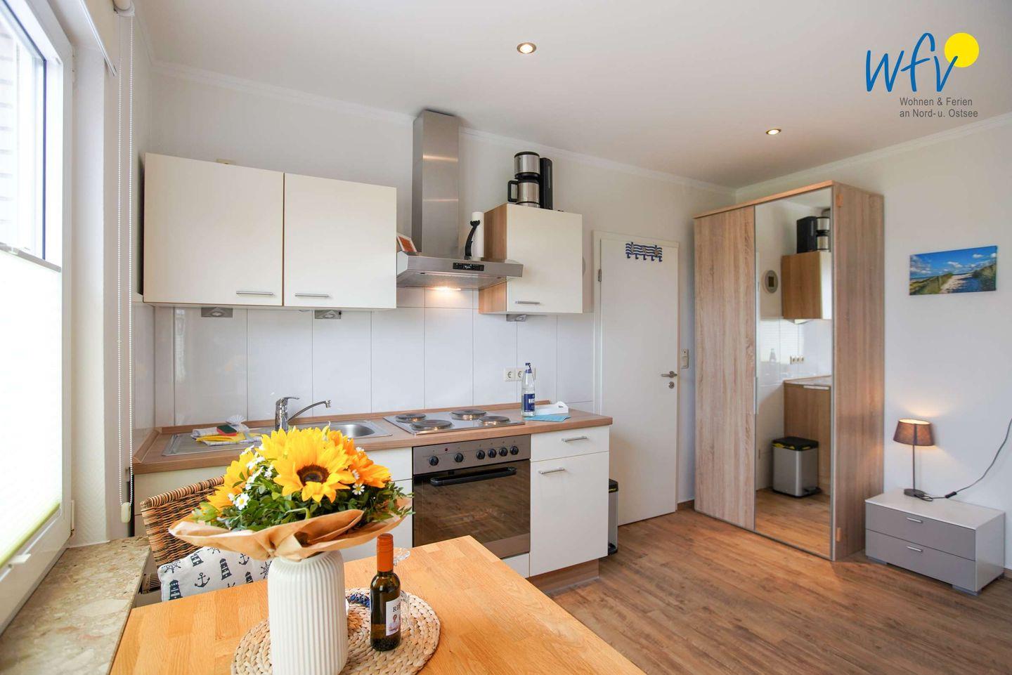 Gemütliche Ferienwohnung Koje im Apartmenthaus Roberta auf Borkum, strandnah und zentral gelegen, ideal für erholsamen Nordseeurlaub als Single.