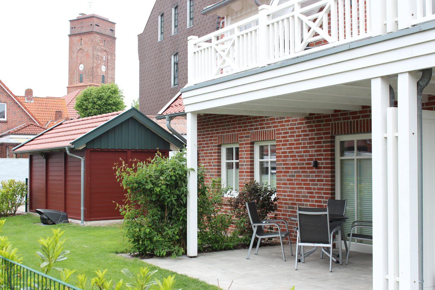 Die nach Süden ausgerichtete Sonnenterrasse lädt mit Gartenmöbeln und zwei komfortablen Relax-Liegen zu entspannten Sonnenstunden ein. Genießen Sie von hier aus einen wunderbaren Blick auf die bekannten Borkumer Leuchttürme. Für Ausflüge an den Strand steht Ihnen während der Saison ein eigener Strandkorb am Hauptstrand zur Verfügung.