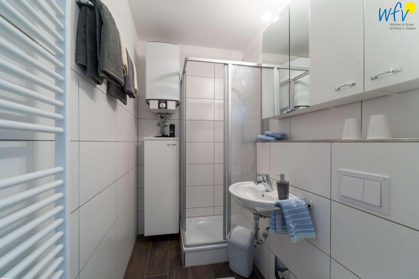 Einen kleinen Abstellraum für Ihre eigenen Sachen und eine Garderobe liegen im Flur der Ferienwohnung.