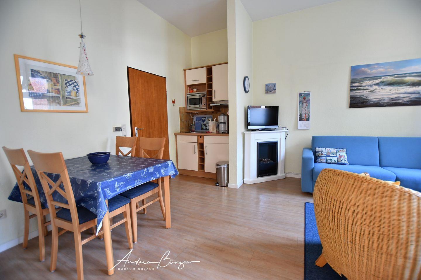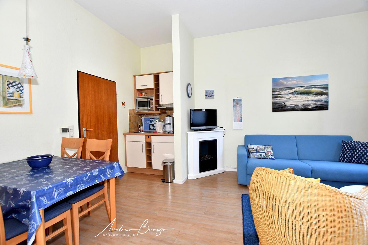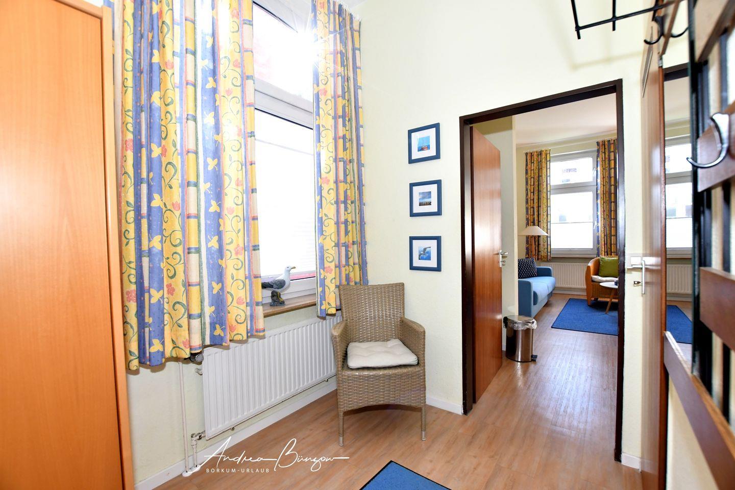 In Borkums ältester Straße, schräg gegenüber dem Kirchplatz der katholischen Kirche, liegt das "Nordseehus" in dem sich diese hübsche Wohnung befindet.