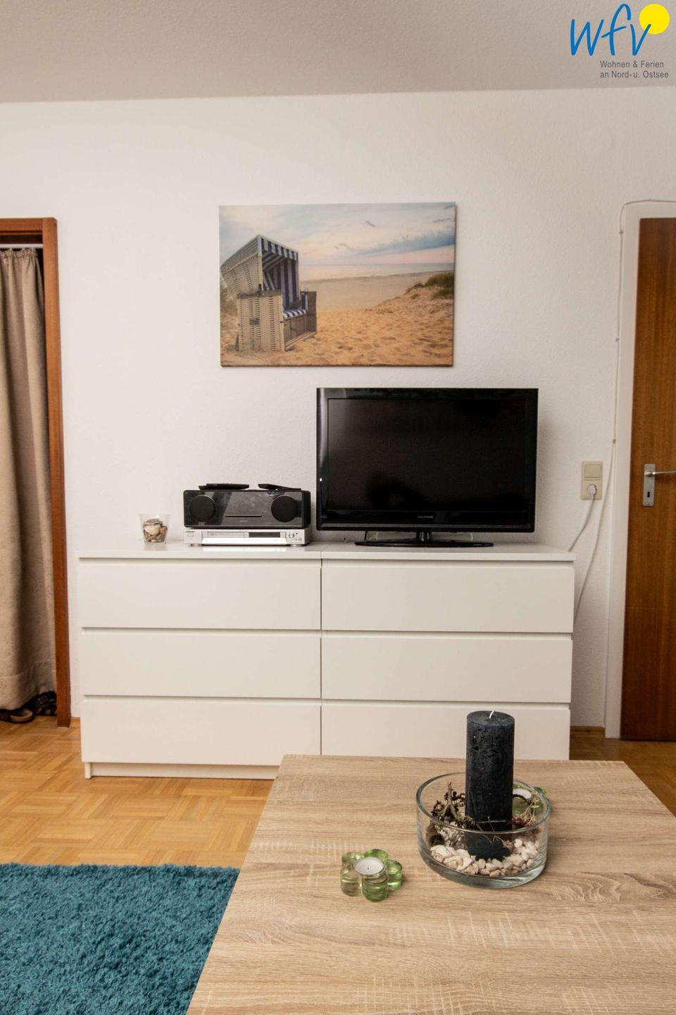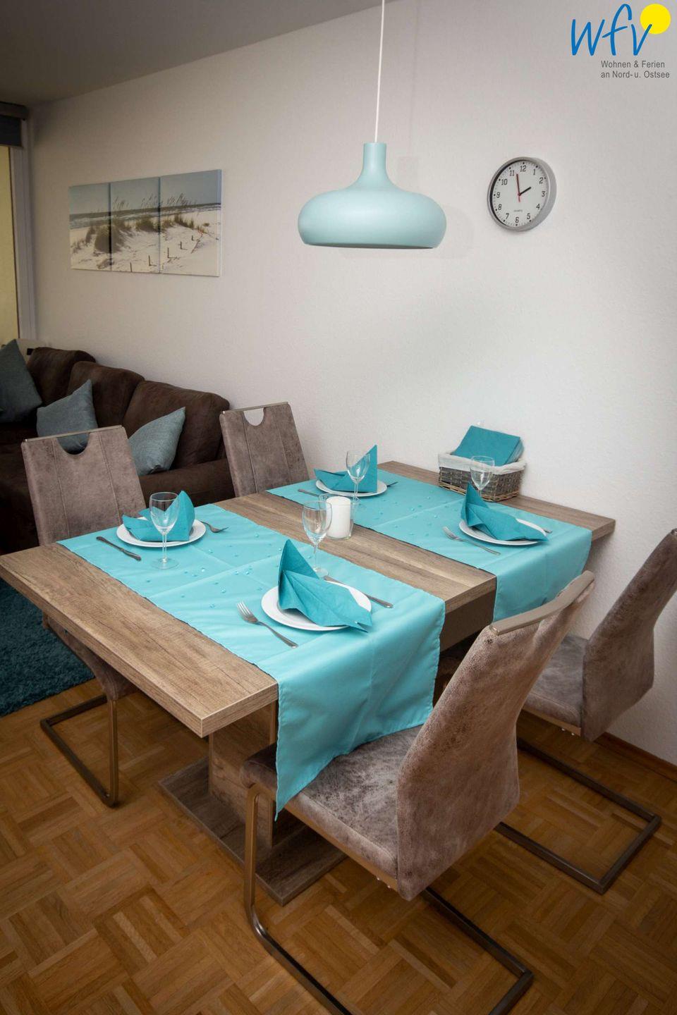 Die Ferienwohnung auf Borkum verfügt über einen großzügigen Wohn-/Essbereich, zwei separate Schlafzimmer und einen schönen Ost-Balkon.