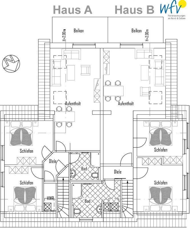 Sollten Sie nur mit max. 4 Personen anreisen, so können wir Ihnen auch jeweils nur das Erdgeschoss anbieten zu günstigeren Konditionen. Fragen Sie nach - 04922 - 9329029.