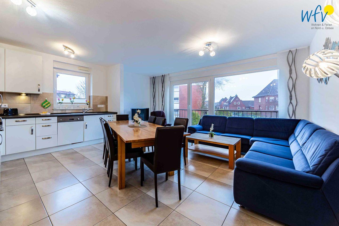 In dem großzügigen Wohn-Essbereich können Sie gemütlich zusammen sein, klönen und essen. Auch einen Film schauen, Musik hören oder vom Smartphone aus im Internet surfen ist möglich - es erwartet Sie eine gute technische Ausstattung mit WLAN, 3D Fernseher, DVD Player und Musikanlage.