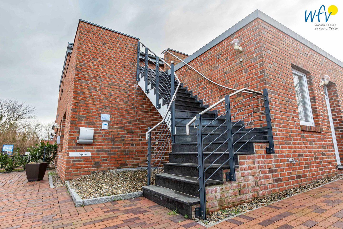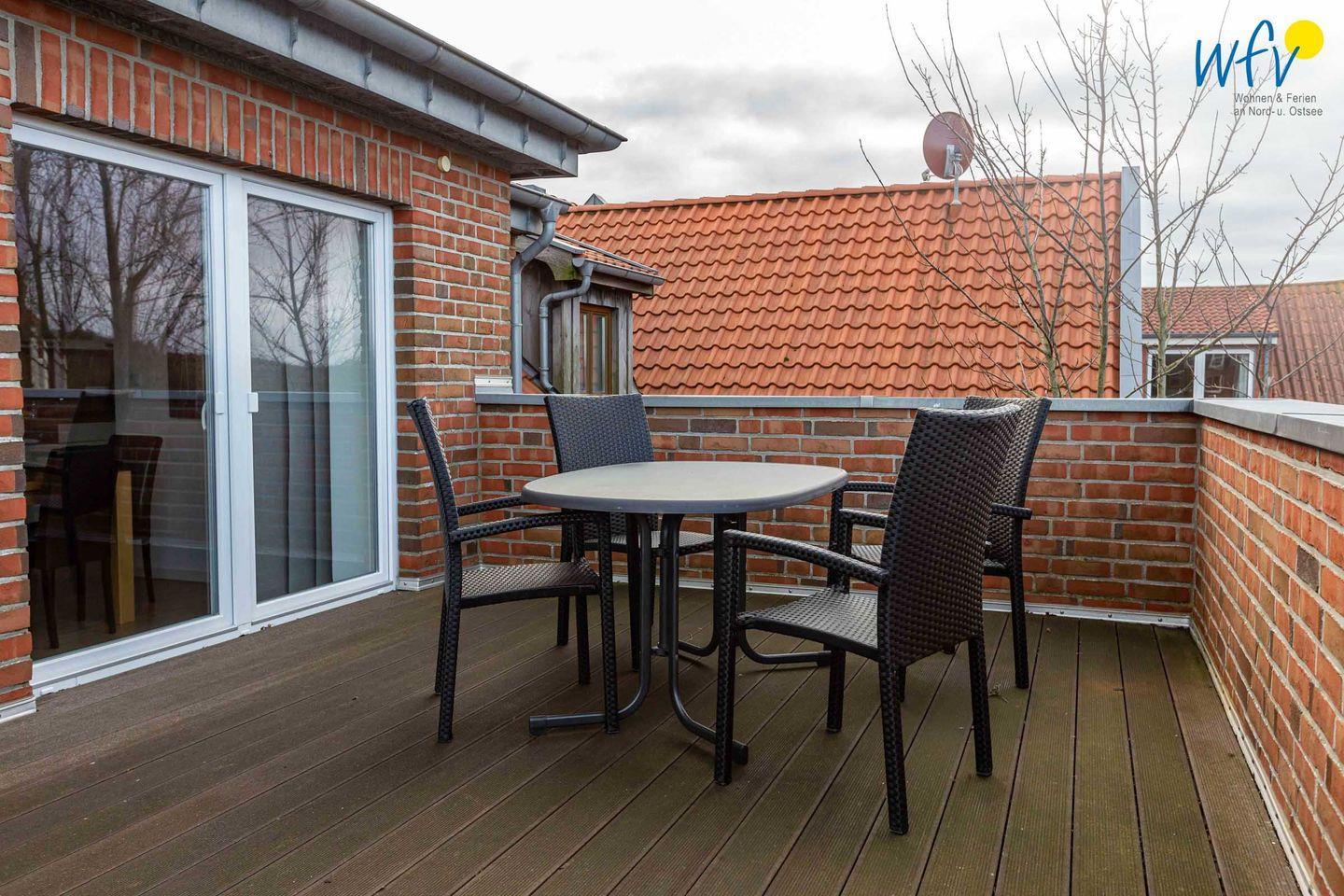 Exklusive Ferienwohnung Neptun auf Borkum mit großer Dachterrasse und moderner Ausstattung für erholsamen Familienurlaub.