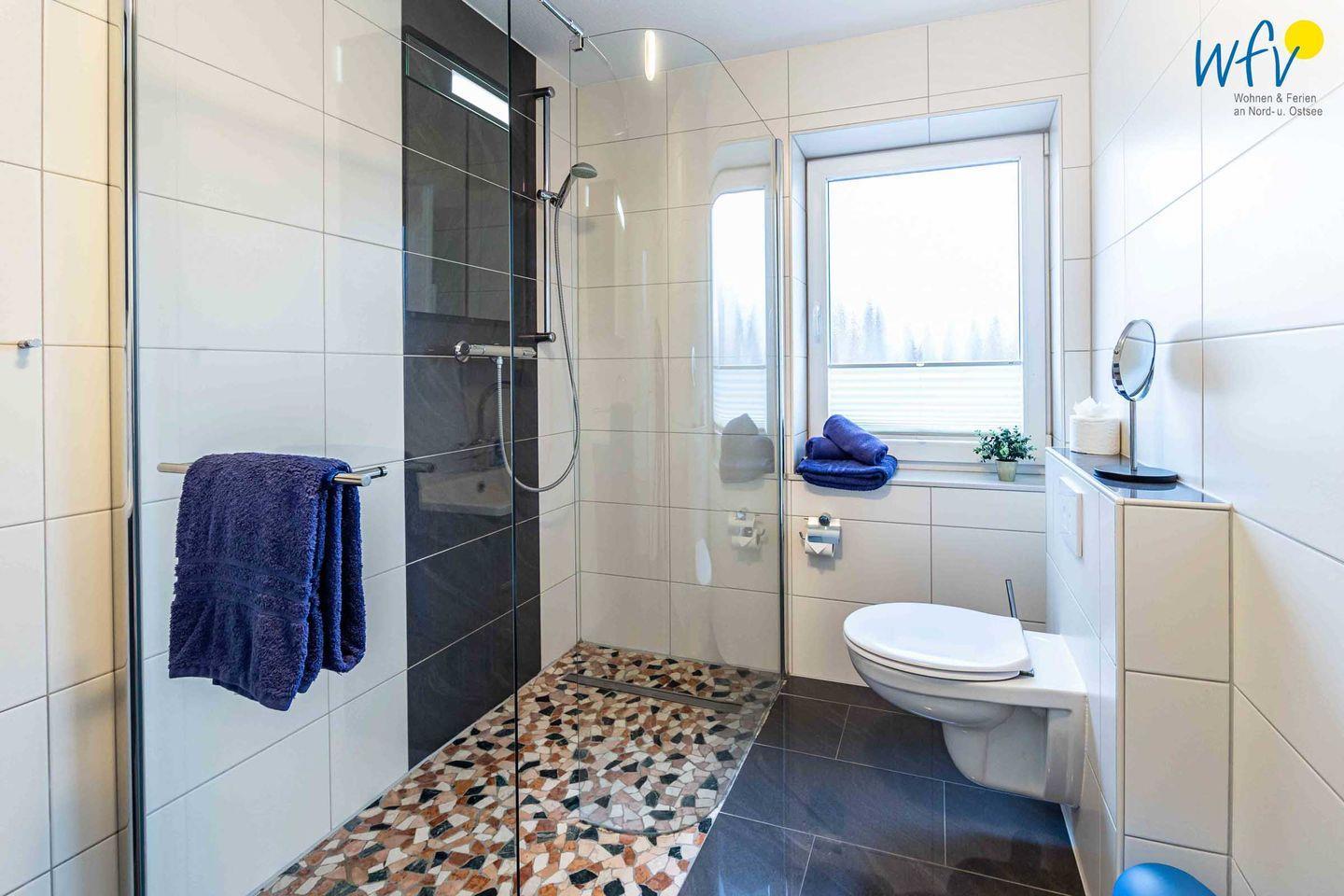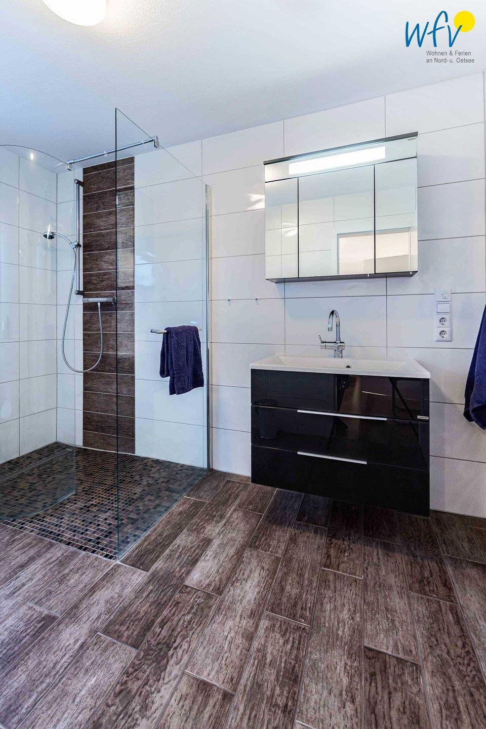 Zwei Badezimmer mit Dusche und WC sowie ein zusätzliches Gäste-WC garantieren ebenfalls angenehme Aufteilungsmöglichkeiten.