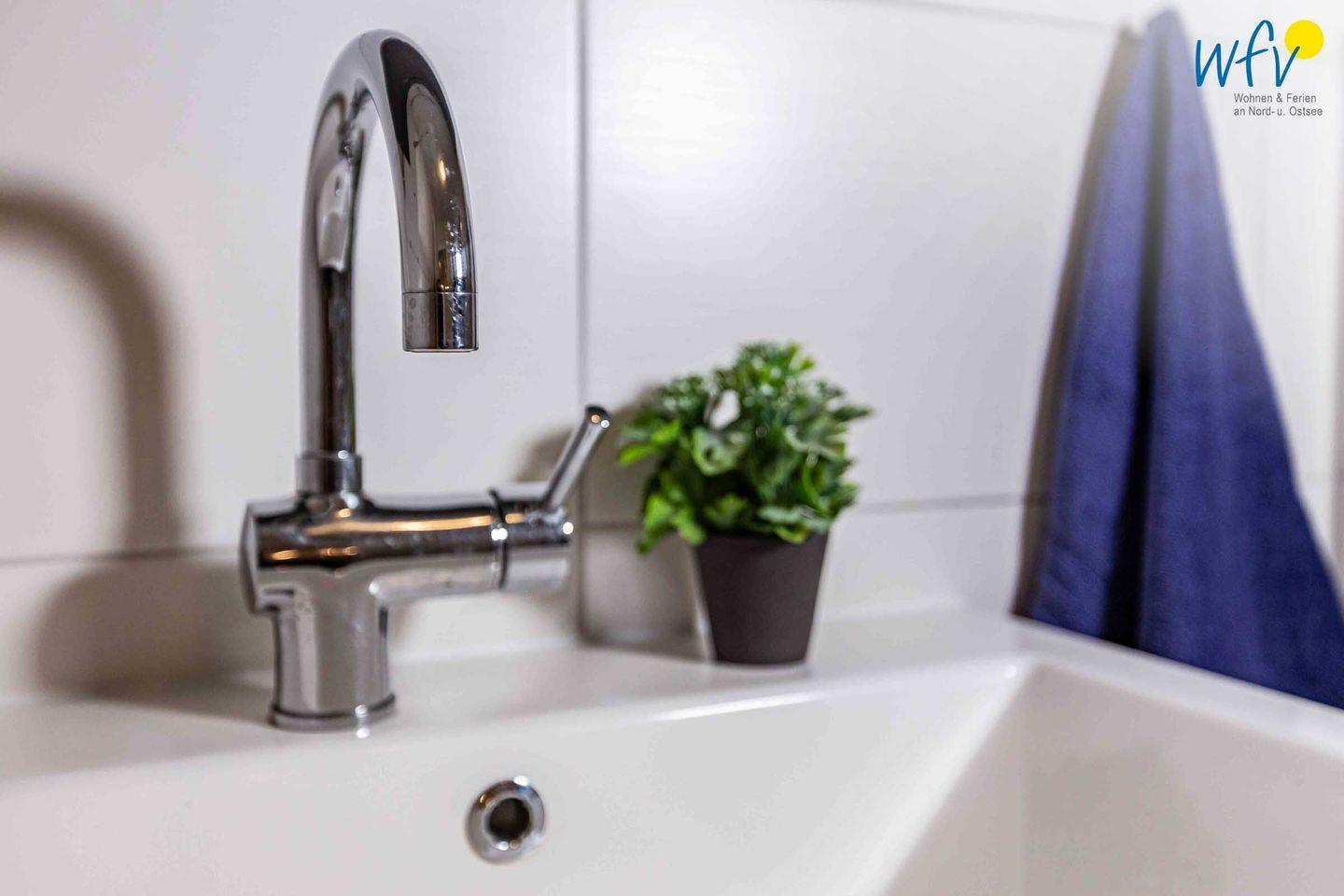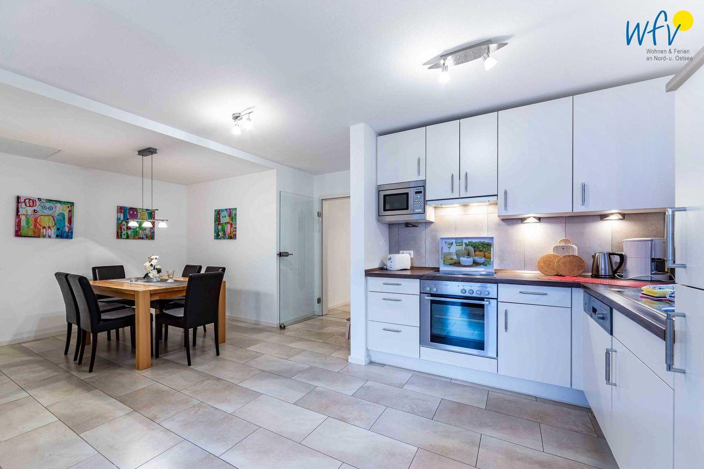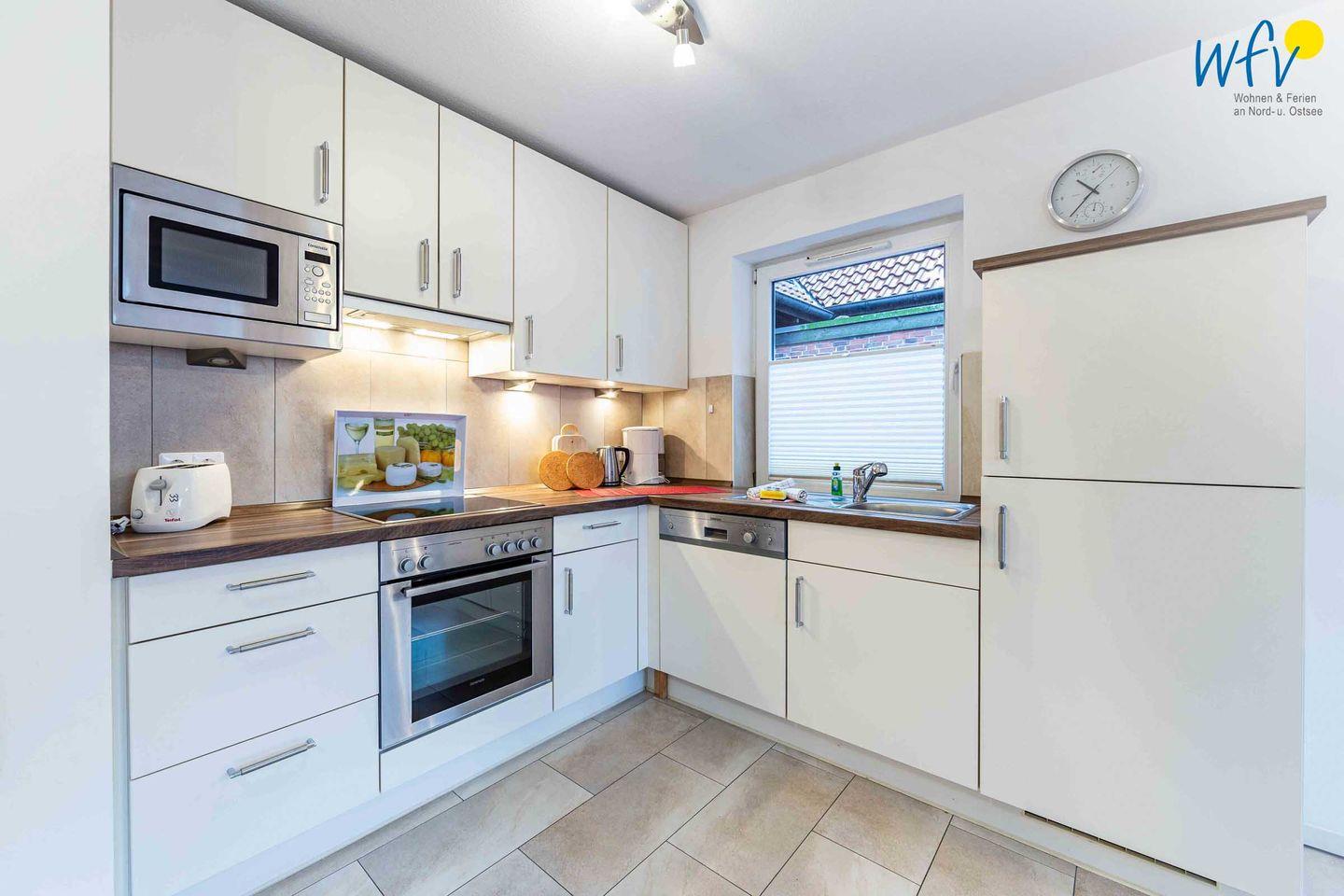 Für eine bequeme Selbstverpflegung verfügt die Borkumer Ferienwohnung über eine moderne Küche - u.a. mit Geschirrspüler und Mikrowelle.