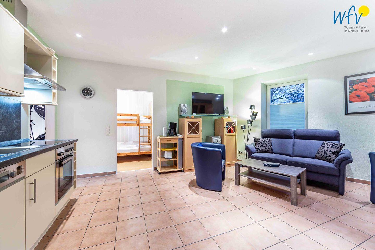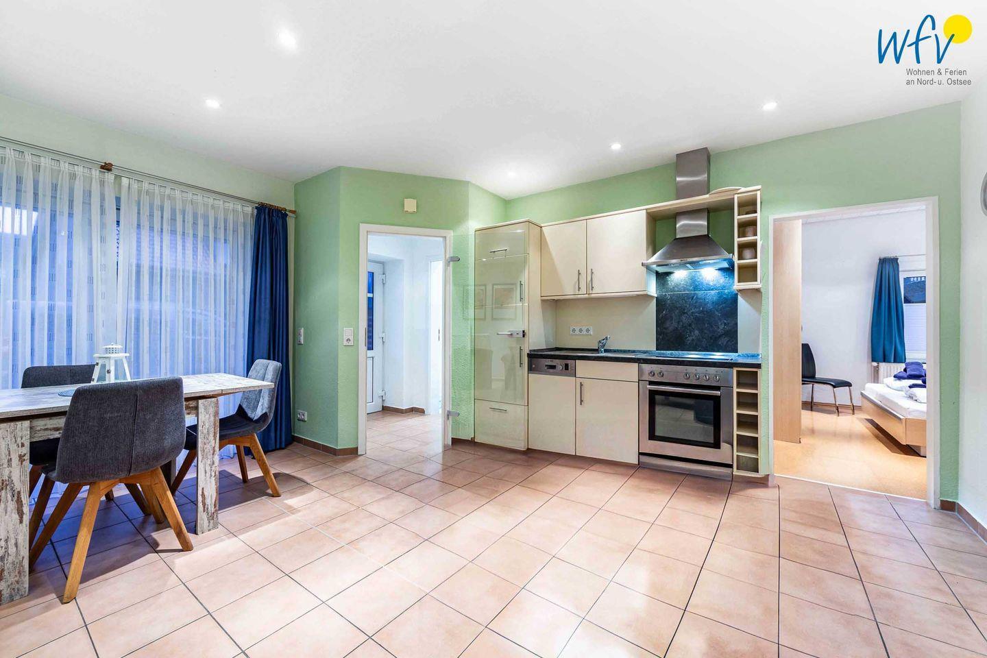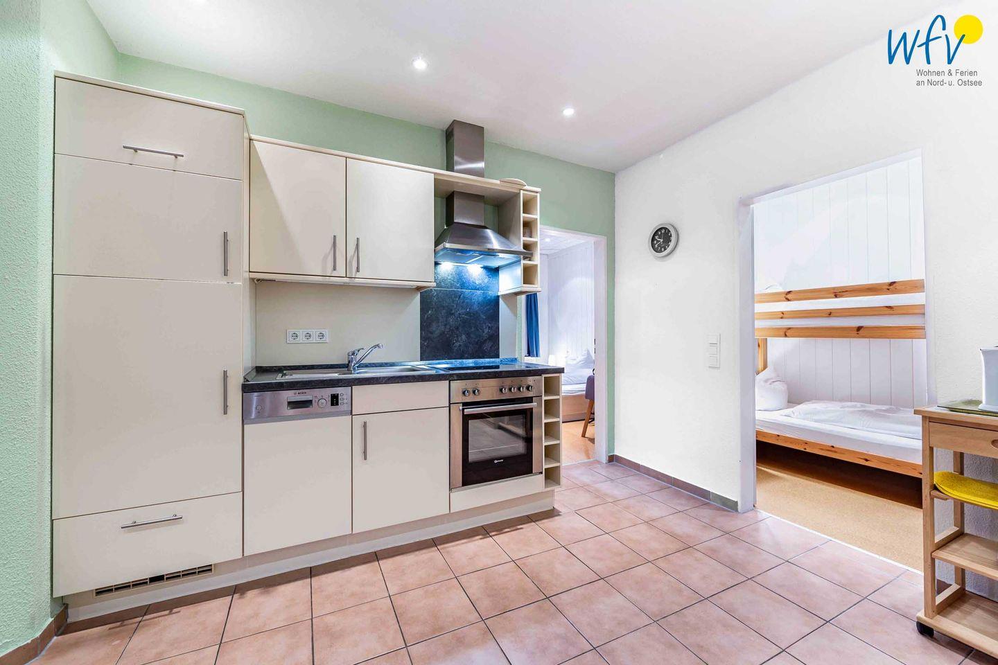 Für eine bequeme Selbstverpflegung ist die Küchenzeile u.a. mit einem Ceranherd, einem Backofen und einer Spülmaschine ausgestattet.