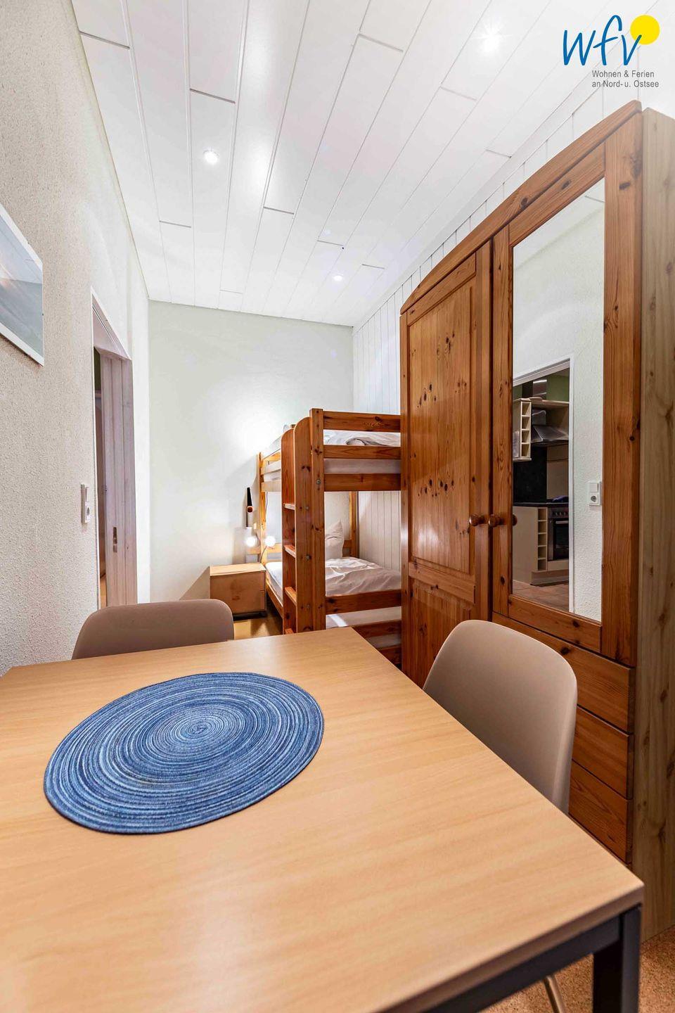 Durch die Nähe zum Strand und durch die kinderfreundliche Ausstattung mit Kinderschlafzimmer (Etagenbett), Kinderreisebett und Hochstuhl ist diese Borkumer Ferienwohnung besonders für Familien attraktiv.