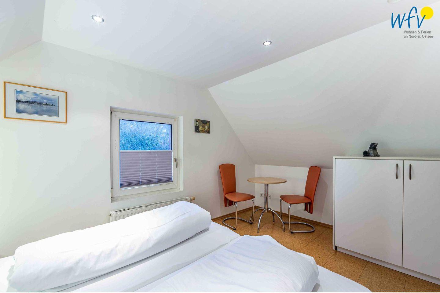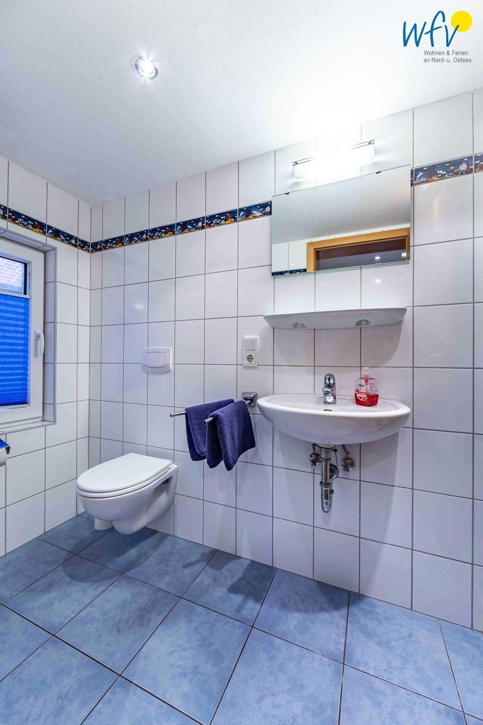 Auf zwei Etagen (EG und OG) können Sie sich mit bis zu sechs Personen wohnlich einrichten. Die Ferienwohnung verfügt über drei separate Schlafzimmer, von denen zwei mit einem Doppelbett und eines mit einem Etagenbett ausgestattet sind. Zwei Badezimmer, jeweils mit Dusche und WC, sowie eine zusätzliche Toilette ermöglichen angenehme Ausweichmöglichkeiten.