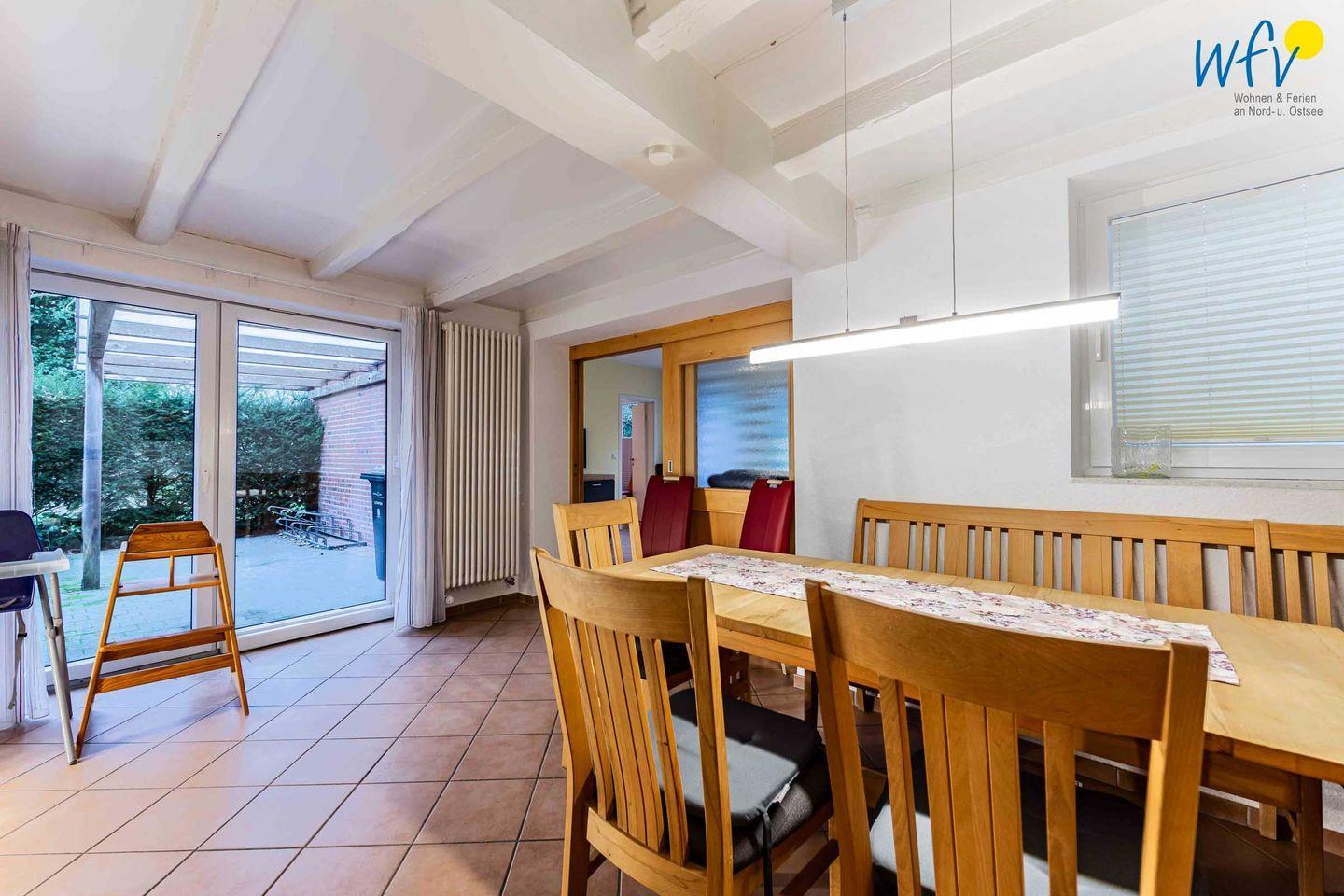 Durch die gut ausgestattete offene Küche (u.a. mit Herd, Backofen, Mikrowelle und Spülmaschine) ist Ihnen eine bequeme Selbstverpflegung garantiert. An dem großen Esstisch können Sie gemeinsam essen und einen neuen ereignisreichen Urlaubstag auf Borkum planen. Oder Sie genießen Ihre Mahlzeit draußen an der frischen Nordseeluft auf der wohnungseigenen Terrasse.