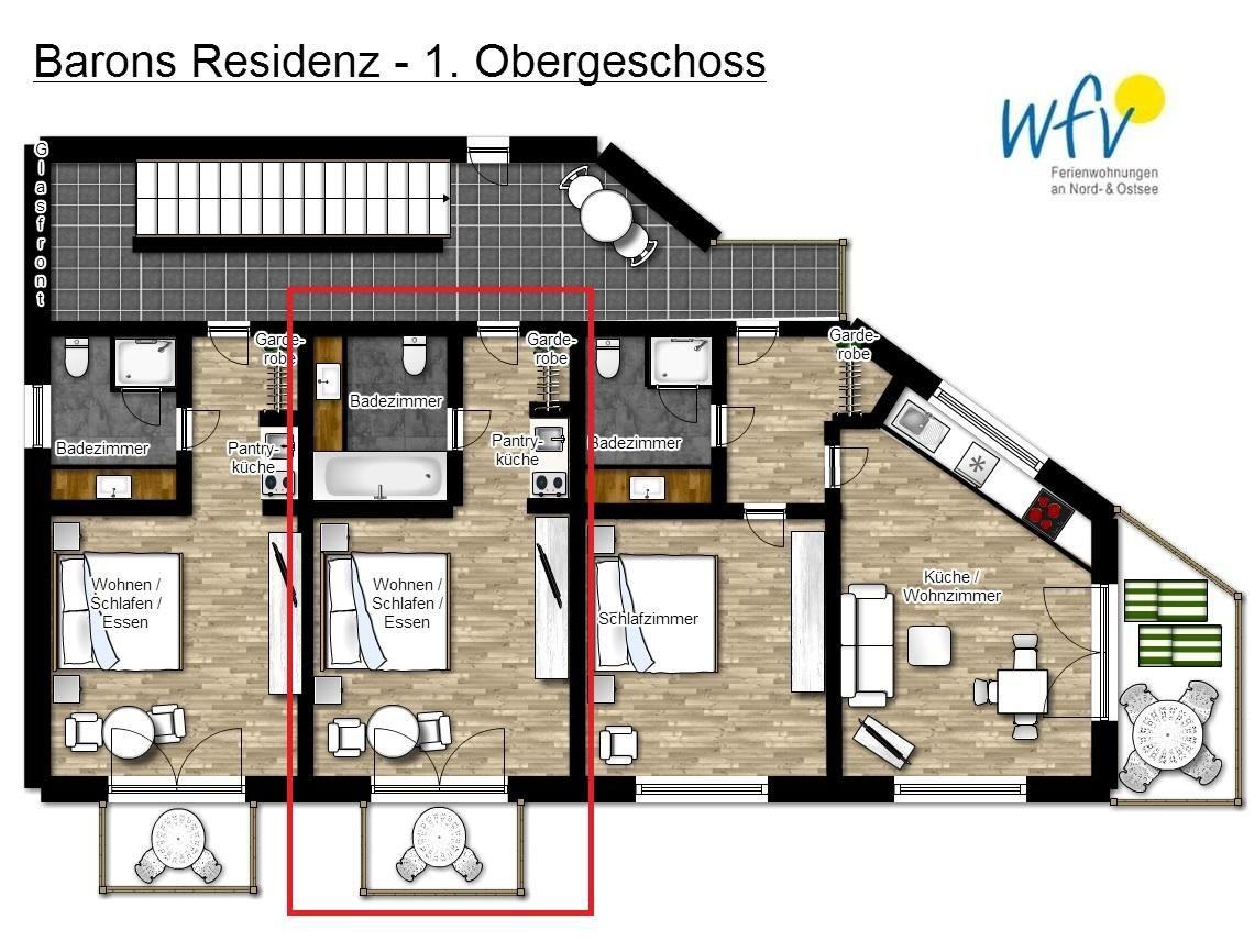 So wohnen Sie in unseren Ferienwohnungen in der „Barons Residenz“ auf Borkum. Erholsame Urlaubstage sind Ihnen hier garantiert!