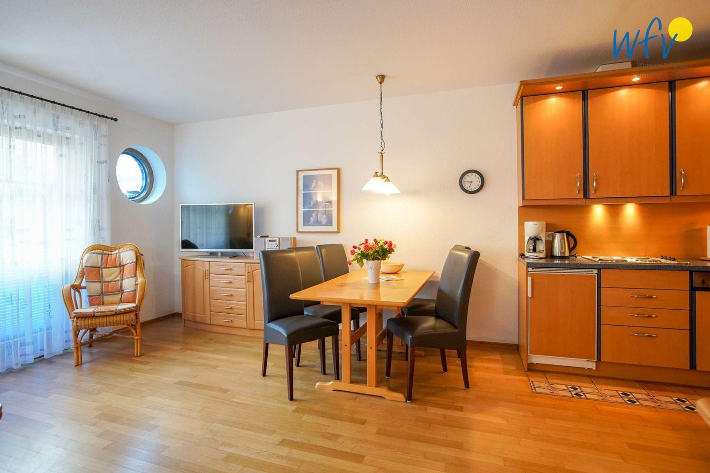 Unsere Ferienwohnung 1 im "Traumschiff Borkum" ist 50 m² groß und verfügt über ein helles Wohn- & Esszimmer mit einer offenen Wohnküche.