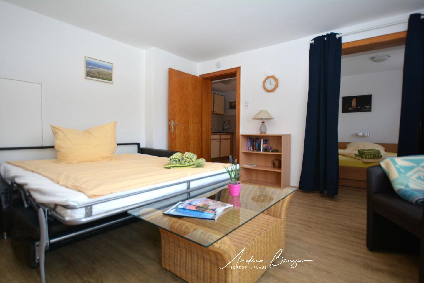 Gemütliche Ferienwohnung für 2 Personen mit Hund, 200 m vom Hauptbadestrand in Borkum entfernt.