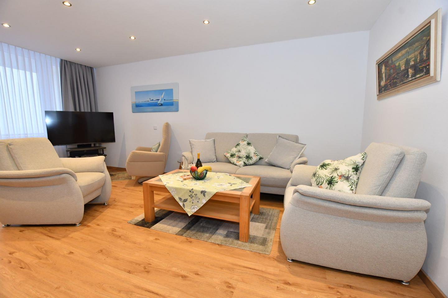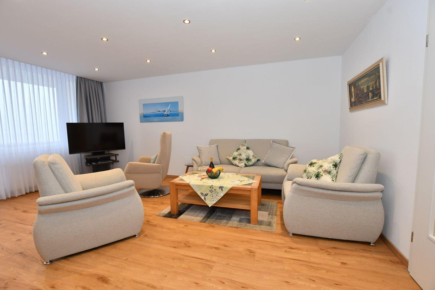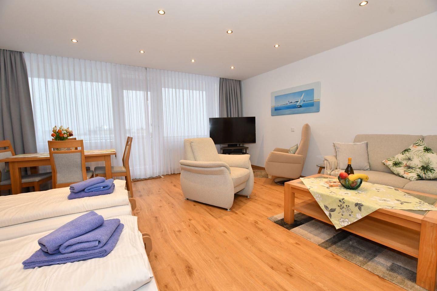 Helle Ferienwohnung mit Meerblick, großem Balkon und moderner Ausstattung auf Borkum.