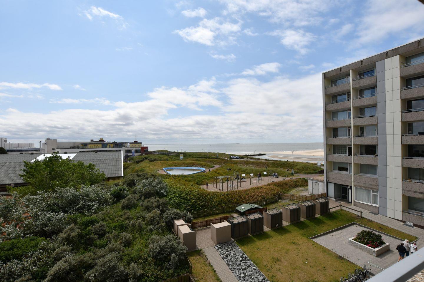Genießen Sie Ruhe und den herrlichen Blick von Ihrem Balkon in der dritten Etage auf das Meer bis zum Eemshaven, das Gezeitenland und einen kleinen Teil Borkums. Der große freundlich helle Wohnraum hat eine Sitzecke mit Couchgarnitur, einen Essplatz direkt am Fenster und 2 Schrankbetten. Eine kleine Küche mit 4 Platten Herd , Kühlschrank, Mikrowelle, Kaffeemaschine, Toaster sowie ausreichend Geschirr schließt sich an den Wohnraum an. Das Bad mit Dusche und WC ist ebenso innenliegend. Die Belüftung erfolgt durch eine sehr gute zentrale Lüftungsanlage. Der große Südbalkon ist mit Tisch und Stühlen ausgestattet. Fahrstuhl im Haus!