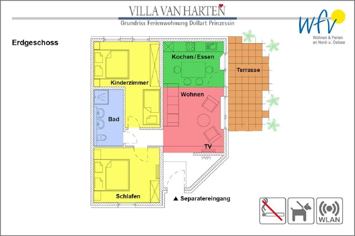 Genießen Sie Ihren Nordsee-Urlaub in zentraler und strandnaher Lage! Unsere komfortable "Ferienwohnung Dollart-Prinzessin" in der "Villa van Harten" auf Borkum verwöhnt Sie mit einer komfortablen Ausstattung sowie mit einem geräumigen Ess- und Wohnraum, zwei separaten Schlafzimmern und einer schönen Terrasse. Auch Ihr Haustier ist herzlich willkommen (bis zu zwei Hunde). Wir wünschen Ihnen gute Erholung!