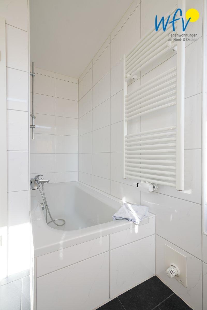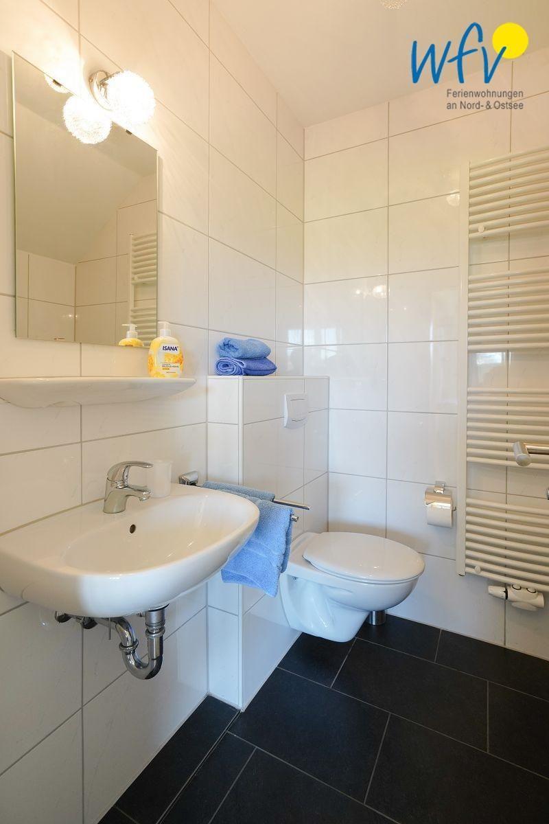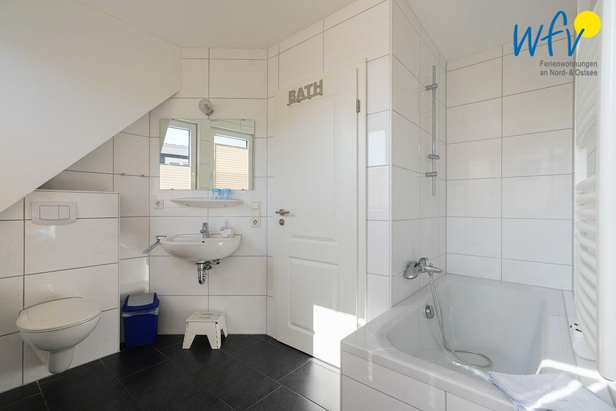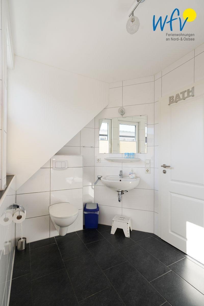 Zwei Badezimmer ermöglichen auch bei vier Personen angenehme Ausweichmöglichkeiten. Das Bad im EG verfügt über Dusche und WC, das Bad im OG über Badewanne und WC.