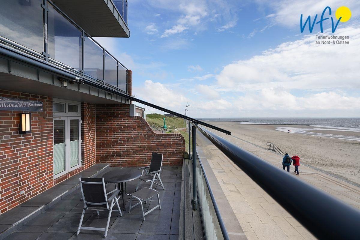 Luxusferienwohnung auf Borkum mit traumhaftem Meerblick und Balkon zum Entspannen.