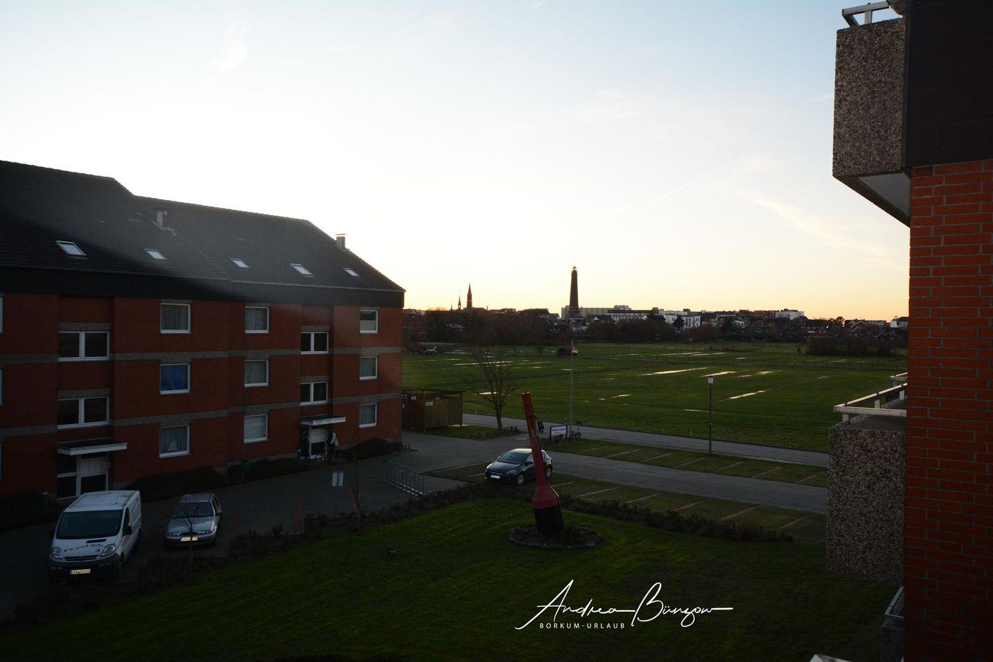 und ein Balkon mit tollem Blick über die Binnenwiesen zu den Leuchttürmen - was will man mehr?
