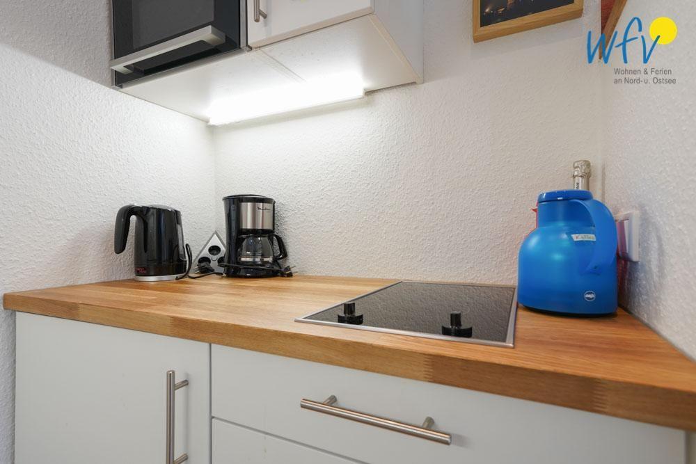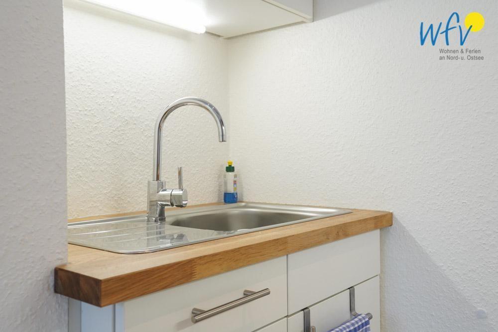 Damit Sie sich in Ihrem Urlaub angenehm selbst verpflegen können, verfügt die Ferienwohnung über eine moderne Küchenzeile - u.a. mit einem 2-Plattenherd, einem Kühlschrank und einer Mikrowelle.