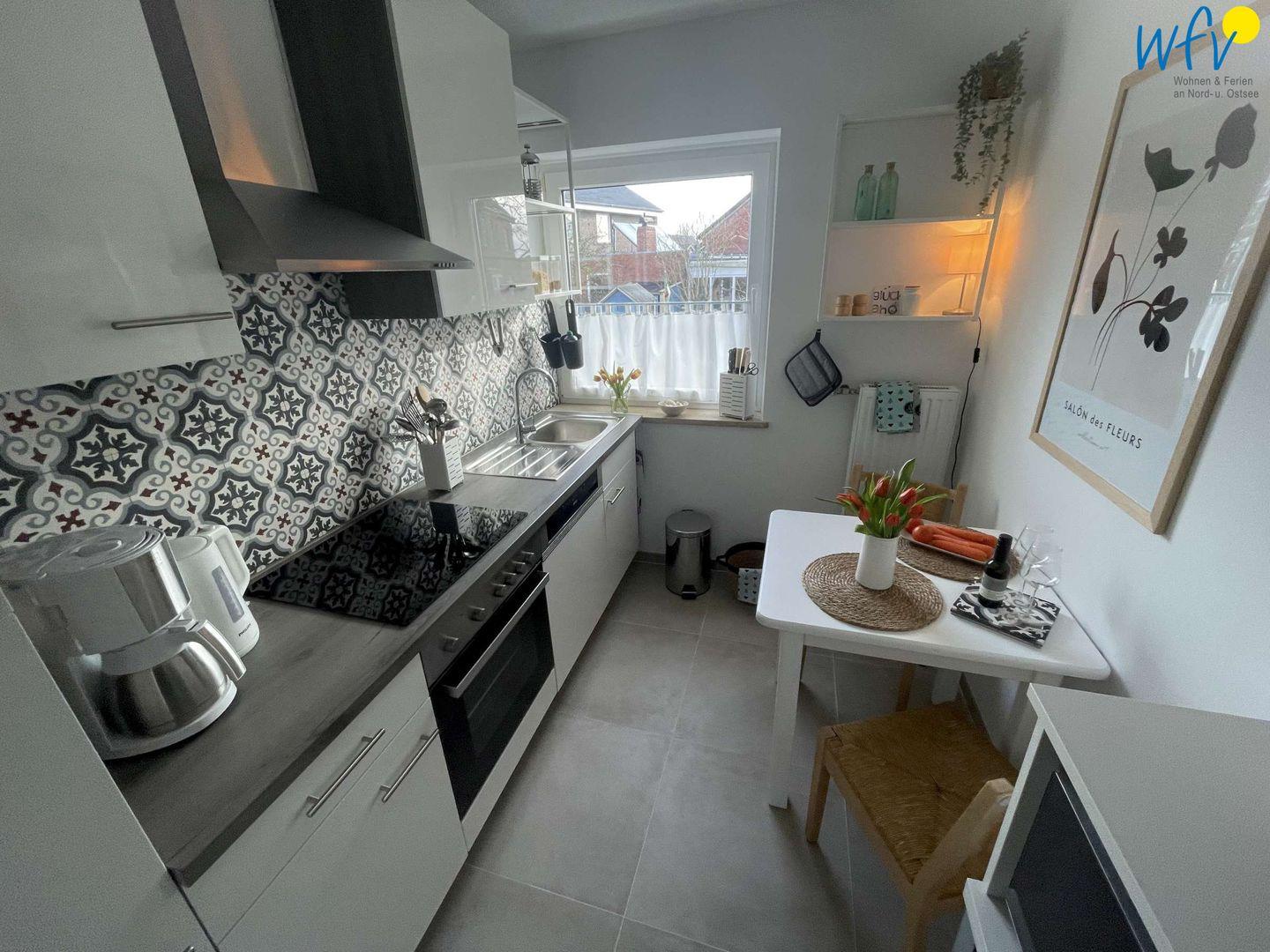 In der modernen Einbauküche mit Ceranfeld, Backofen und Mikrowelle wird die Selbstverpflegung zum Kinderspiel! Hier lassen sich sowohl die Sandwiches für den Strand fix zubereiten, als auch das Urlaubsdinner am Abend. Den Abwasch erledigt die Spülmaschine. Sollten Sie auswärts essen wollen, finden Sie im Borkumer Ortskern viele empfehlenswerte Restaurants, die Ihnen eine köstliche Nordseeküche servieren.