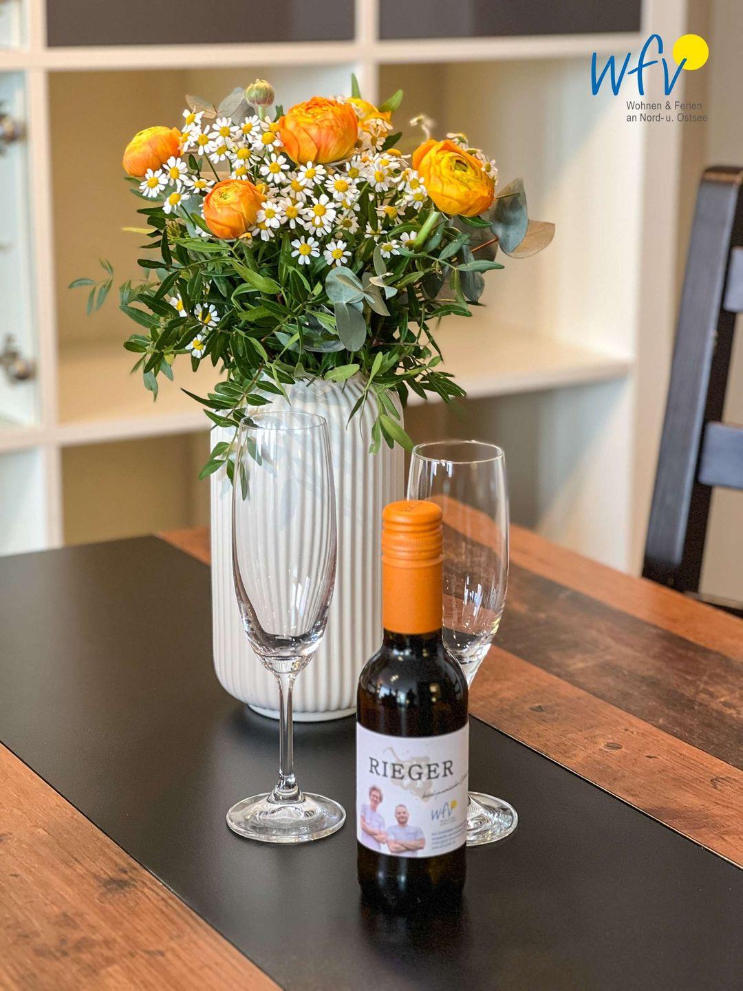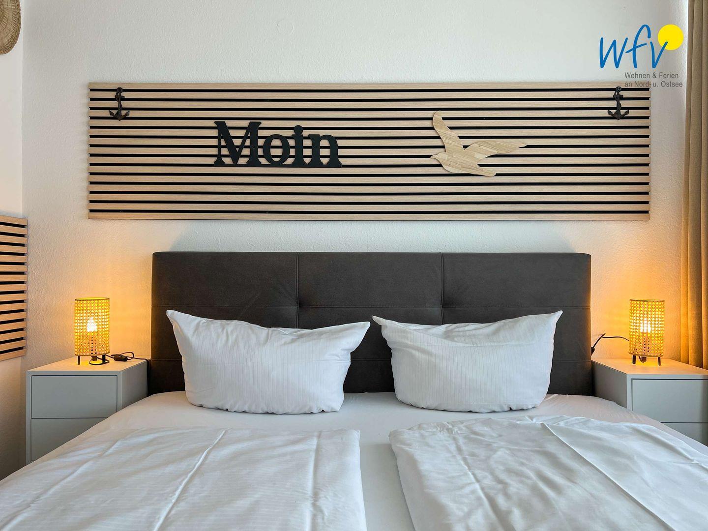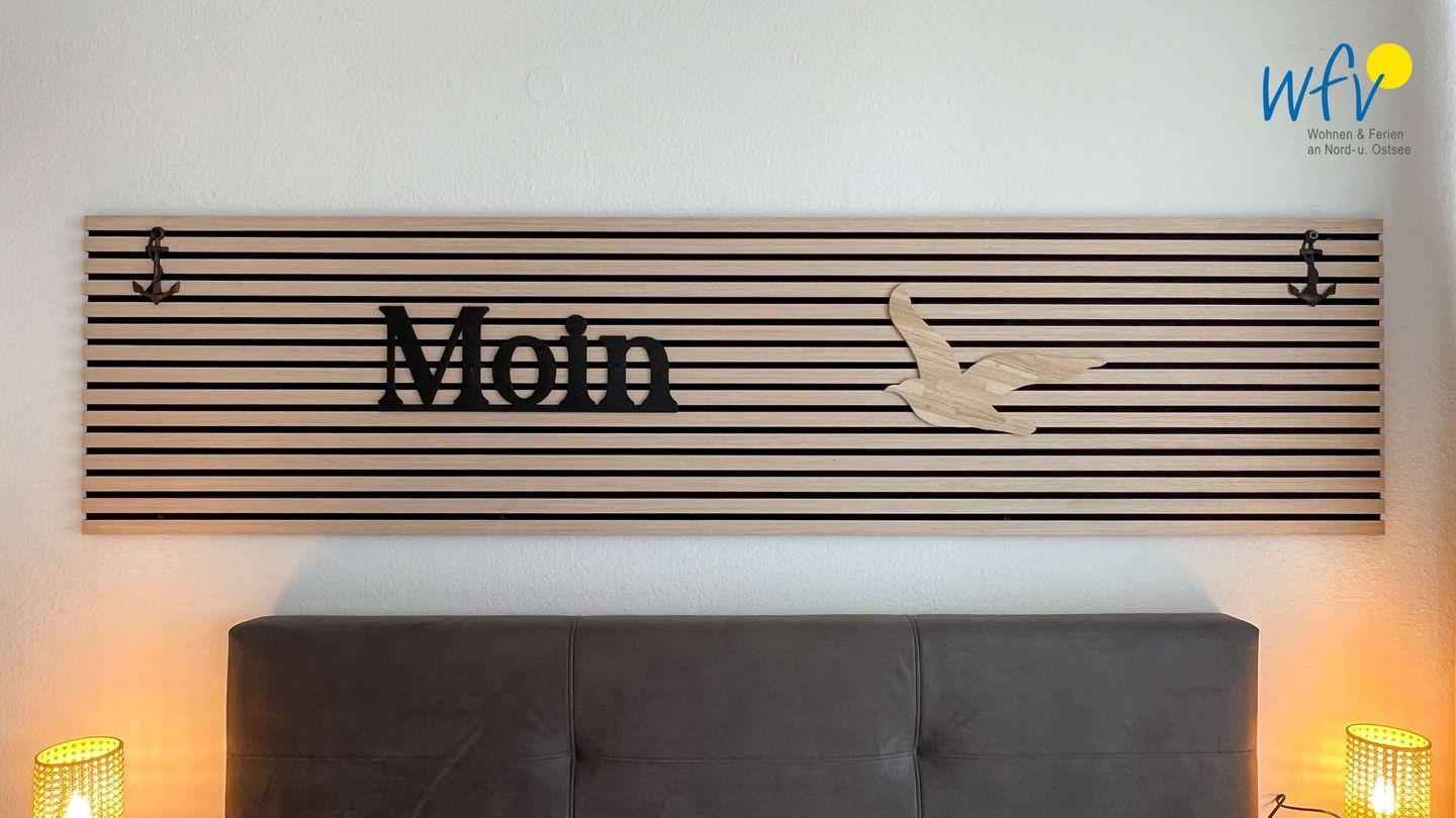 Die Ferienwohnung verfügt über einen großzügigen Wohnraum, ein separates Schlafzimmer, eine Küche, ein Duschbad, einen Abstellraum und einen Balkon. Moderne Möbel, hochwertiger Parkettboden und ein offener Meerblick machen die Wohnung zu einem wunderbaren Ort zum Wohlfühlen.