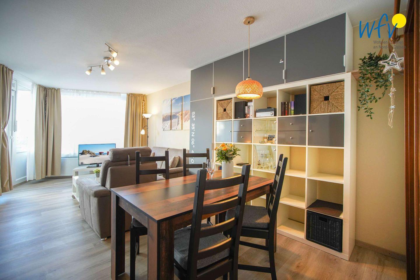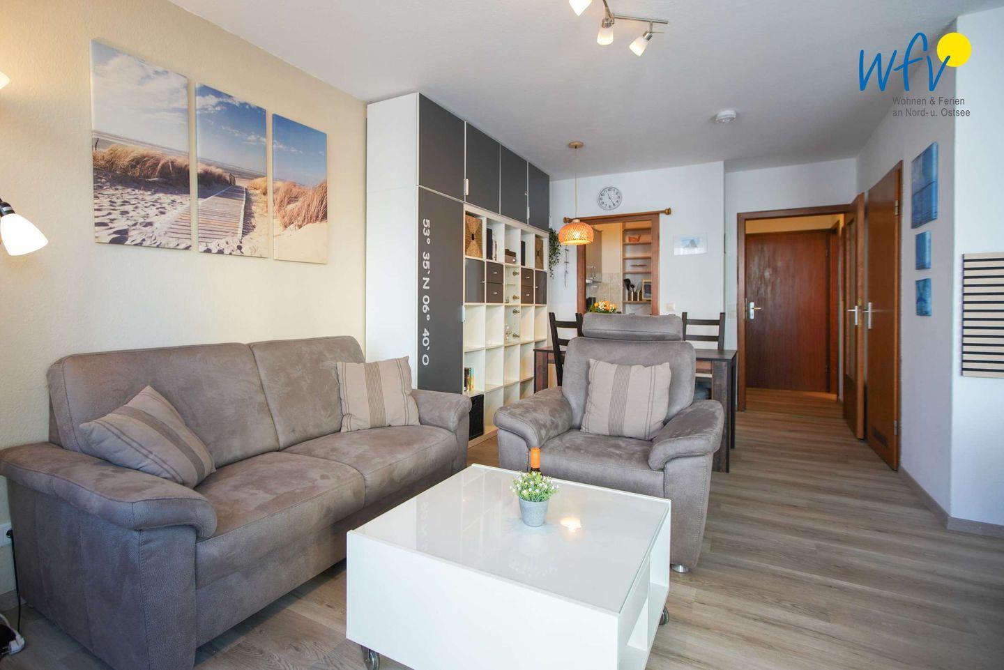 Ausgiebig relaxen können Sie besonders in der gemütlichen Couchecke mit TV. Ebenso auf dem sonnigen Balkon, von dem Sie einen schönen Blick auf die Seehundbänke und die Nordsee haben!